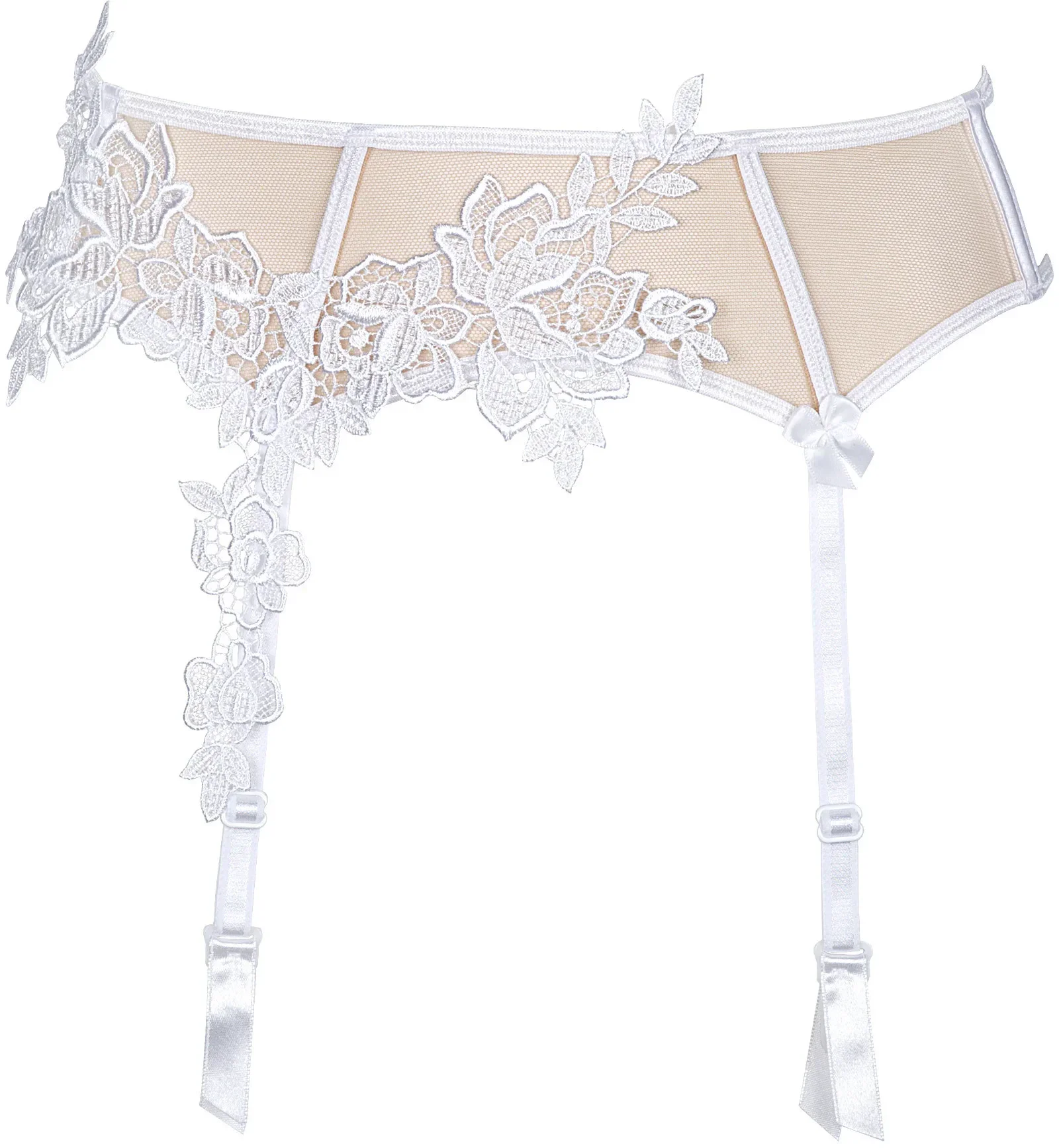 Exkluzivní a fascinující měkká podprsenka V-8851 je avantgardní novinkou v naší nabídce. Lehký a průhledný béžový tyl s bílým vyšívaným motivem zdůrazní křivky a krásu vašeho poprsí. Spolu s páskem V-8852 a tangy V-8858 vypadá fenomenálně. Podprsenka se zavazuje za krkem, vzadu je tradiční zapínání na háčky a očka.