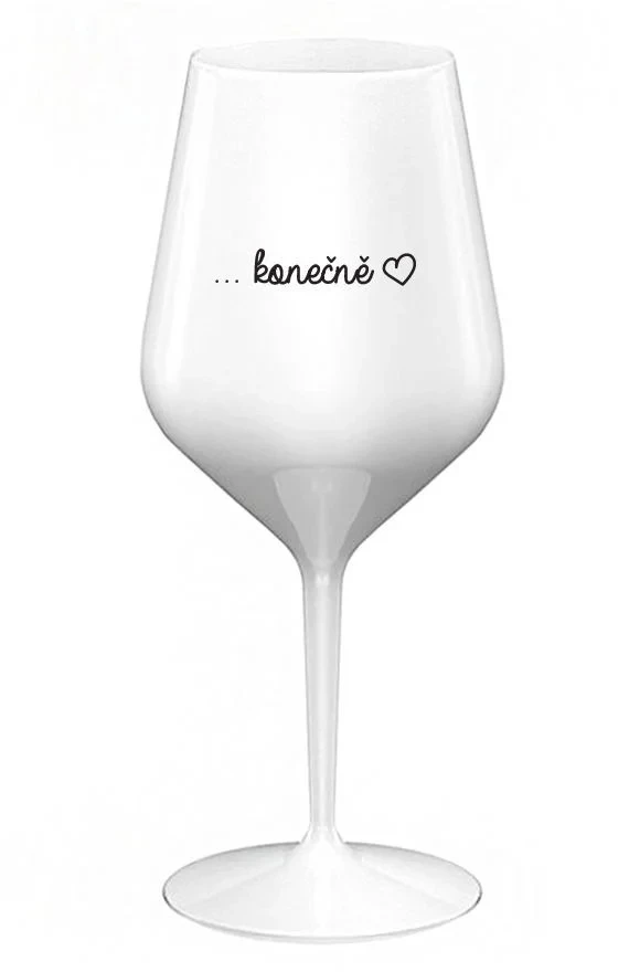 Nerozbitná bílá vinná sklenice s motivem ...KONEČNĚ je skvělá na zahradu, pláž, výlet, piknik a parádu udělá i při kempování. Jelikož je vyrobená z kvalitního polykarbonátu je de facto nerozbitná. Je to luxusní kousek, s nímž si víno můžete vychutnat prostě kdekoliv. Mají ergonomický tvar, který příjemně padne do ruky a protože je lehká, usnadňuje to její přenášení. Je snadno skladovatelná a lehce se čistí. Díky svému designu si s ní můžete vychutnat doopravdy kdekoliv bezproblémové pití výborného vína.