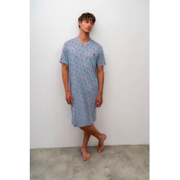 Pohodlná pánská noční košile 16614 modrá s potiskem - Vamp