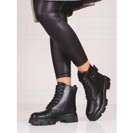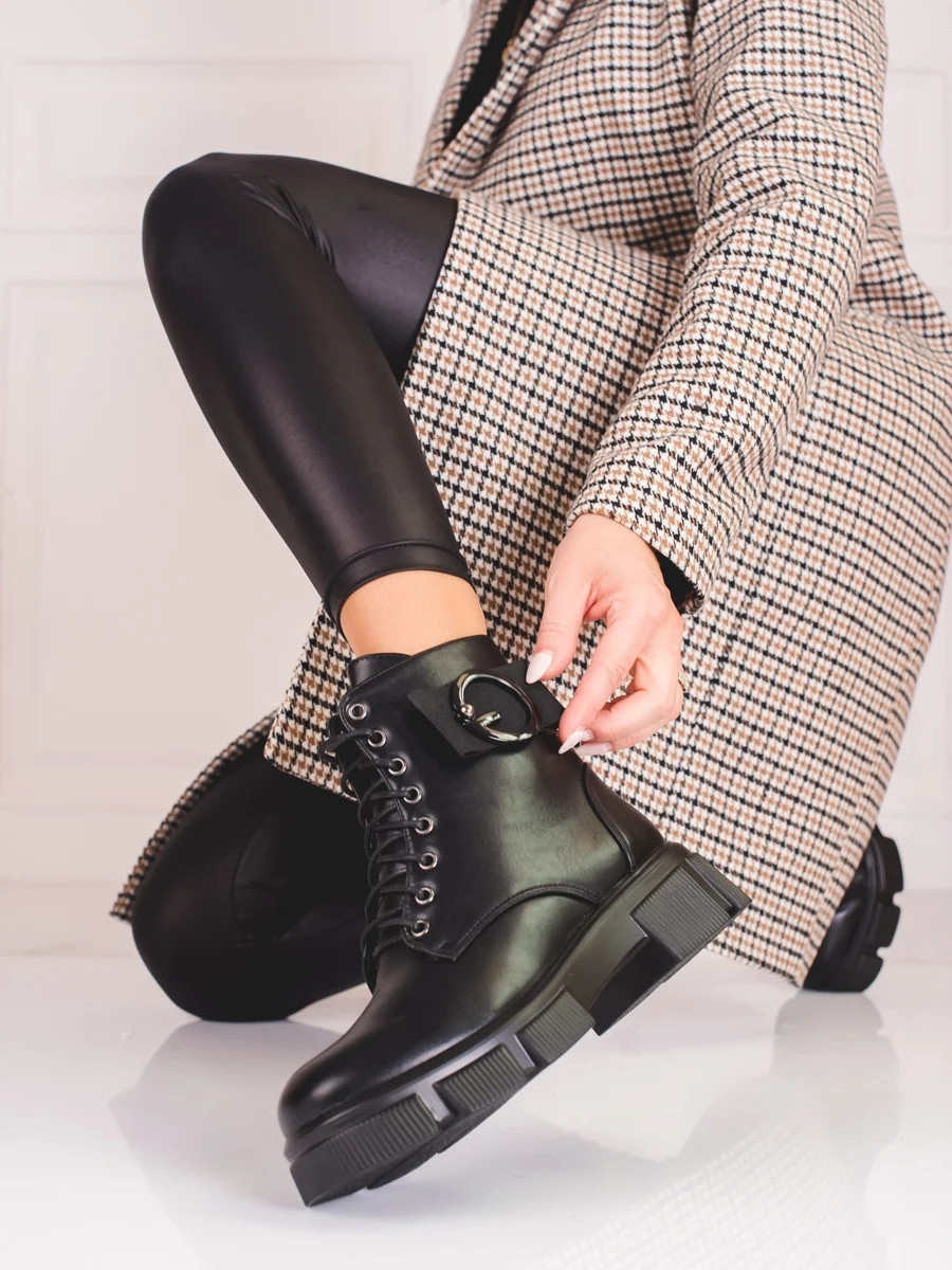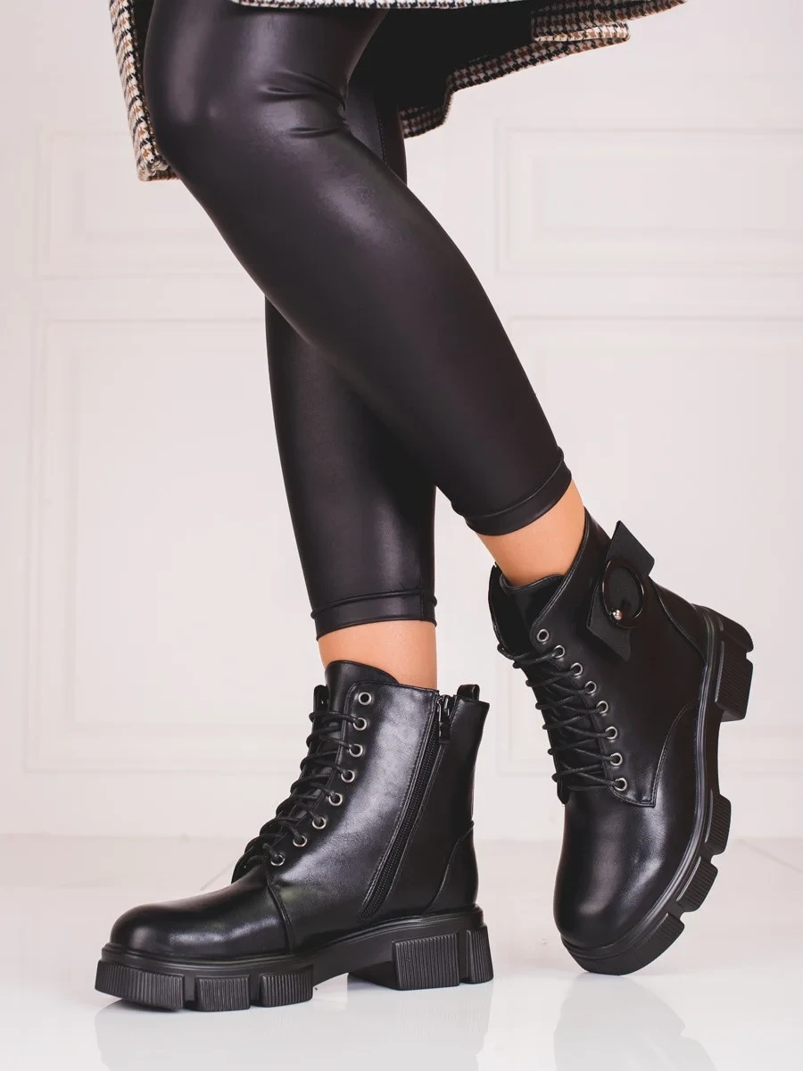 Pohodlné černé kotníčkové boty dámské na plochém podpatku
