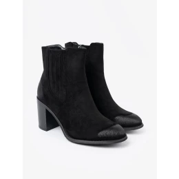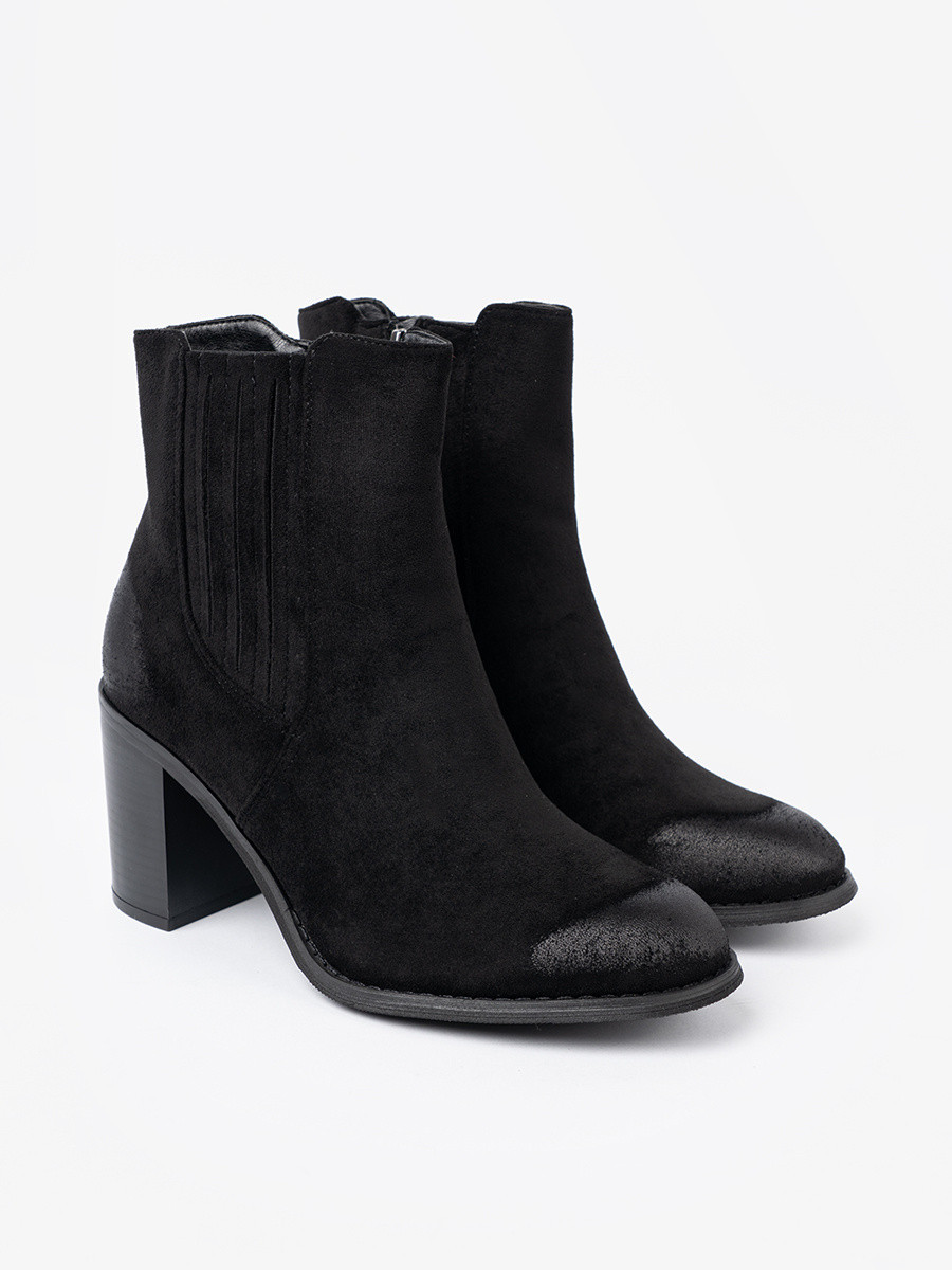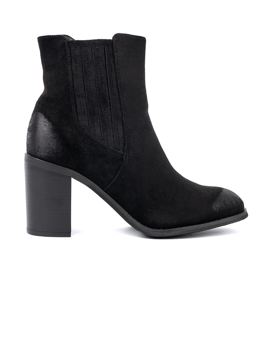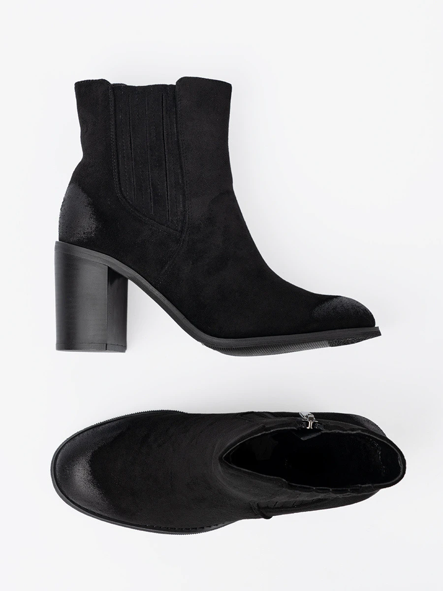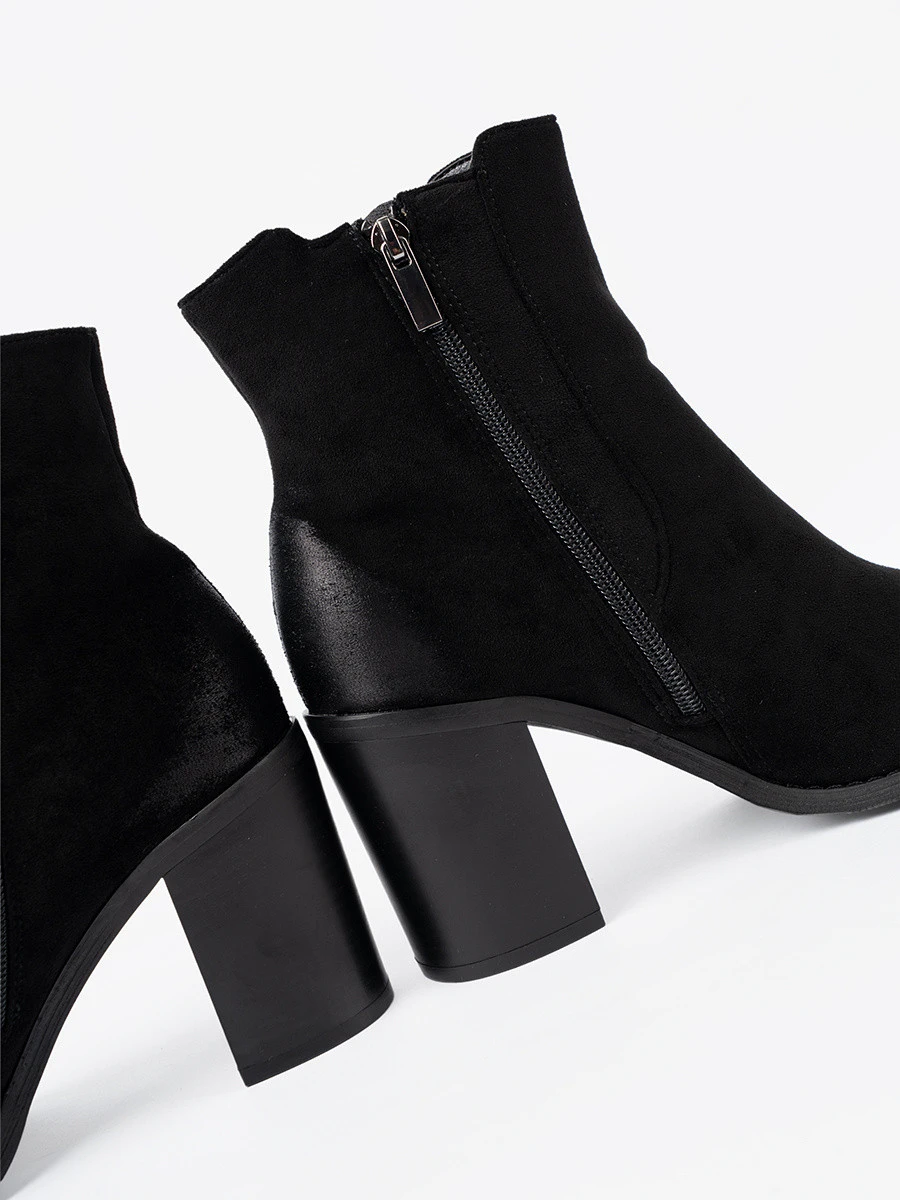 Pohodlné černé kotníčkové boty dámské na širokém podpatku