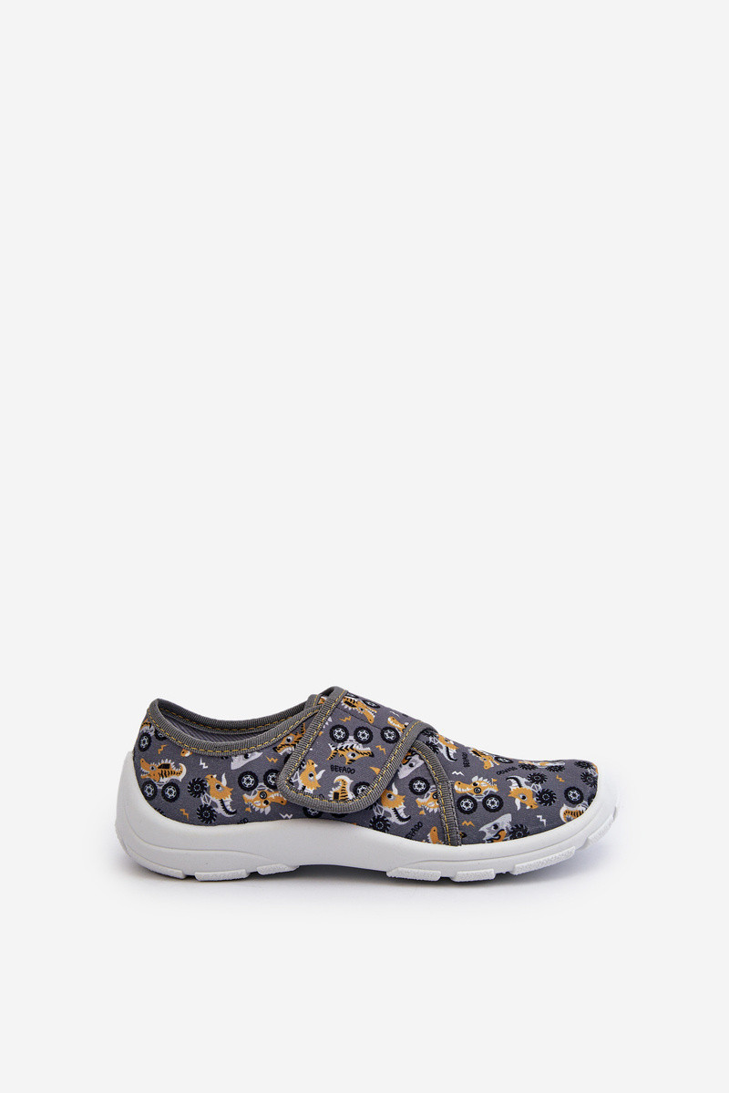 Pohodlné chlapecké pantofle na suchý zip model 21662247 šedé - Befado