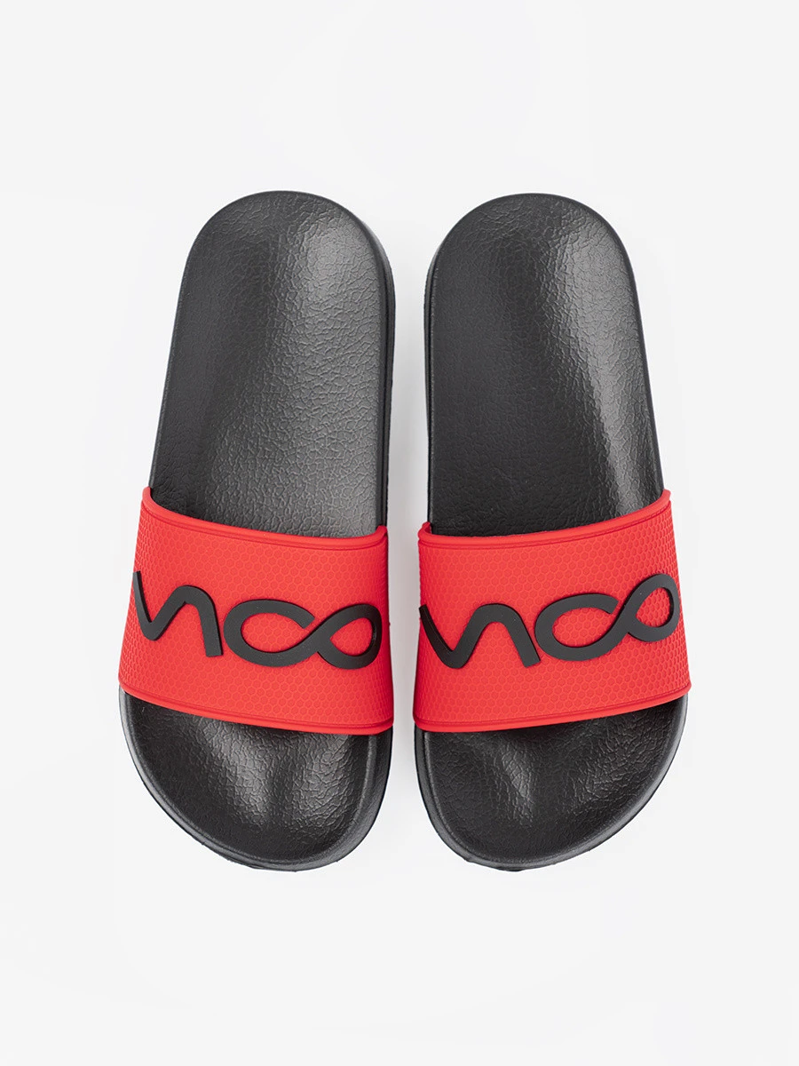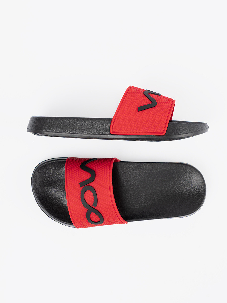 Pohodlné Czarno-czerwony dámské nazouváky na plochém podpatku