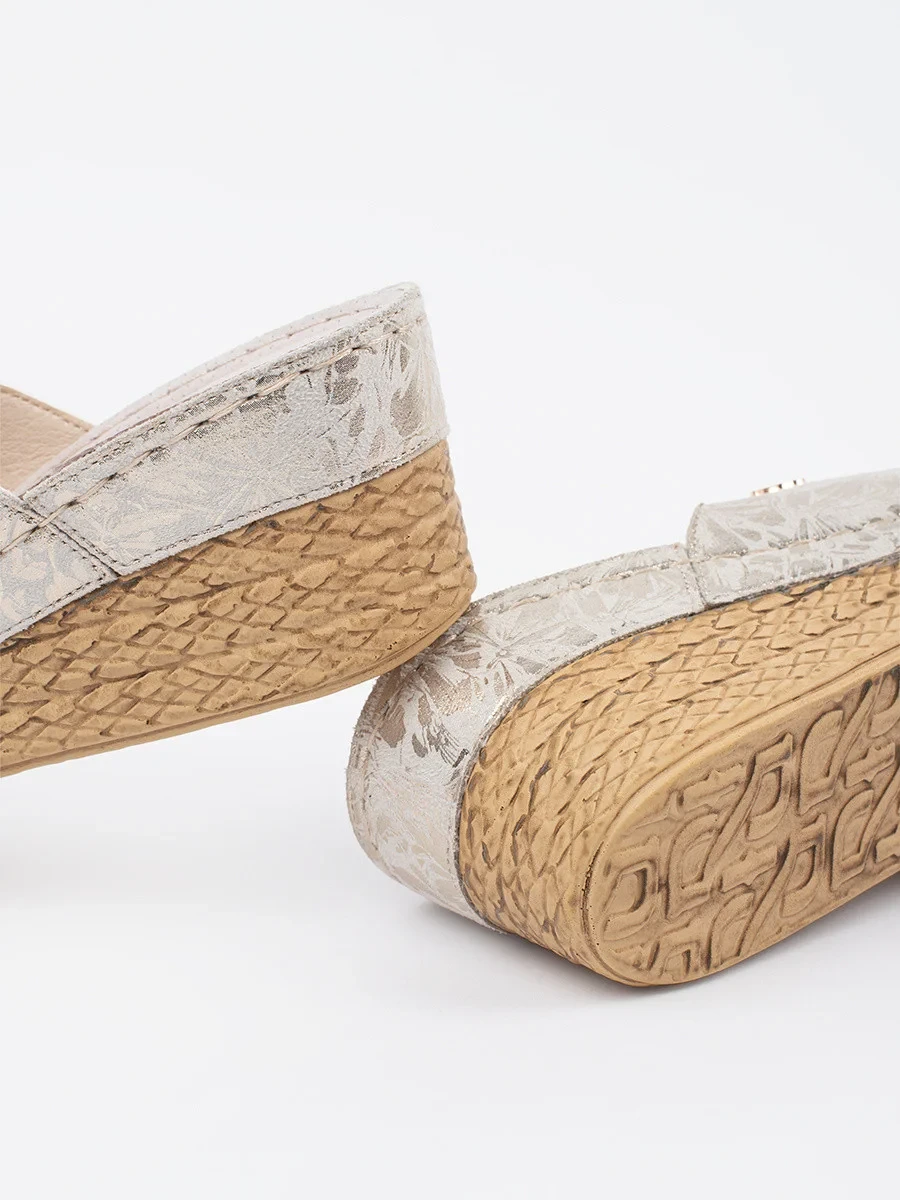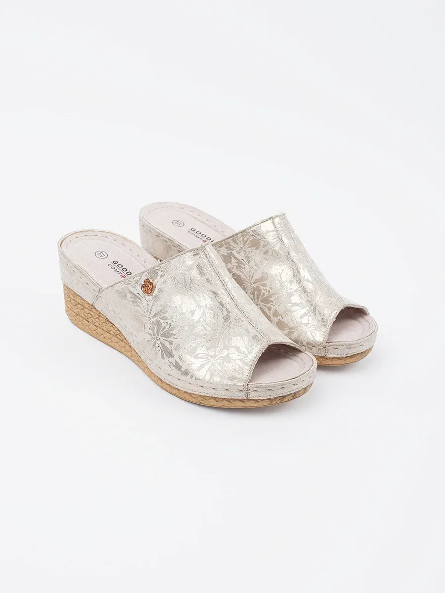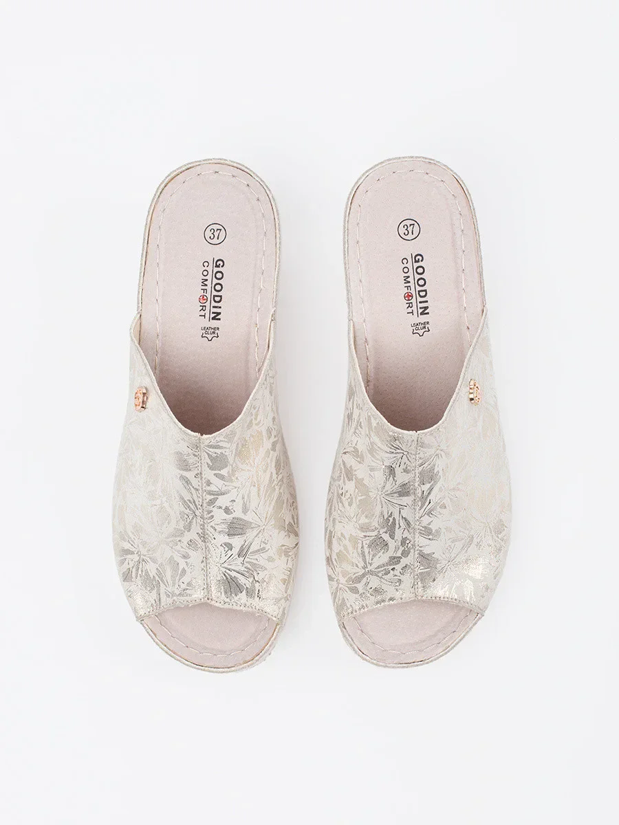 Pohodlné dámské Jasnobeżowy nazouváky na klínku