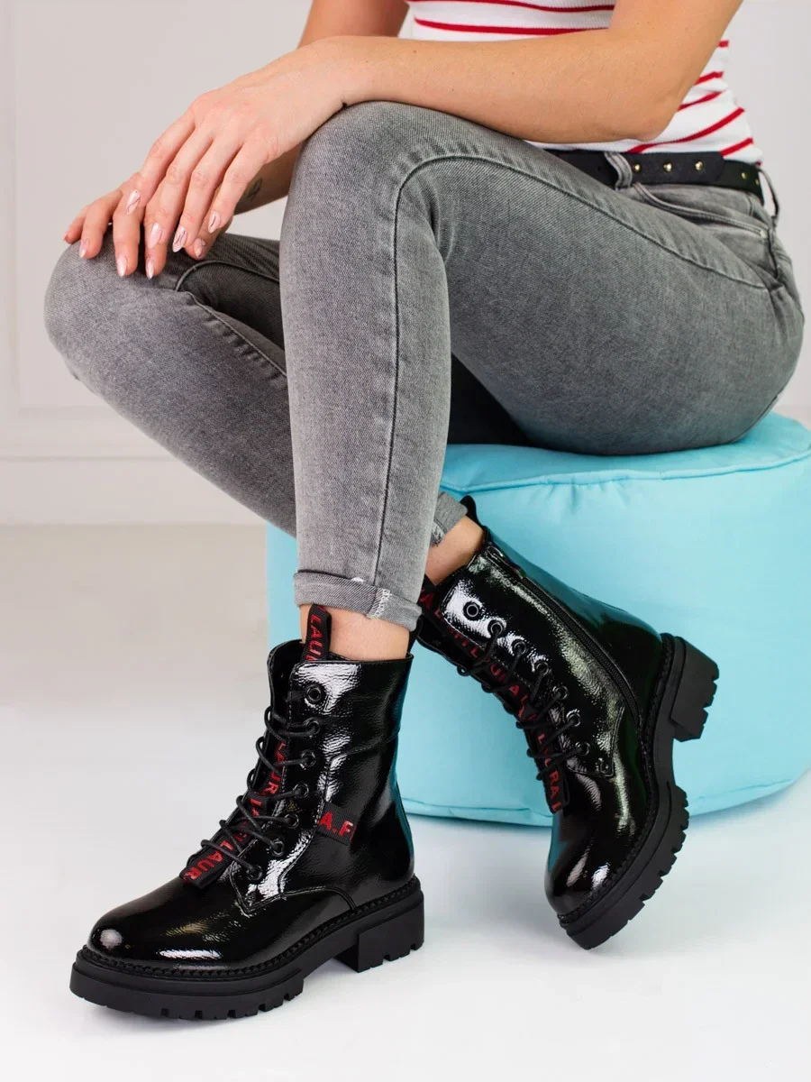 Přidání recenze k Pohodlné dámské kotníčkové boty černé na plochém podpatku