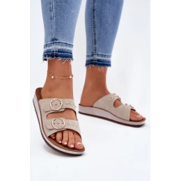 Pohodlné dámské pantofle béžové model 21697980 - Inblu
