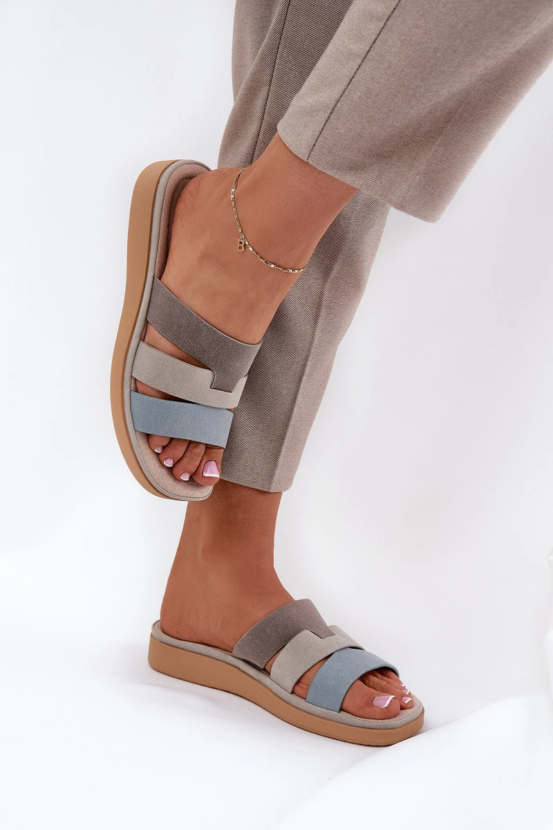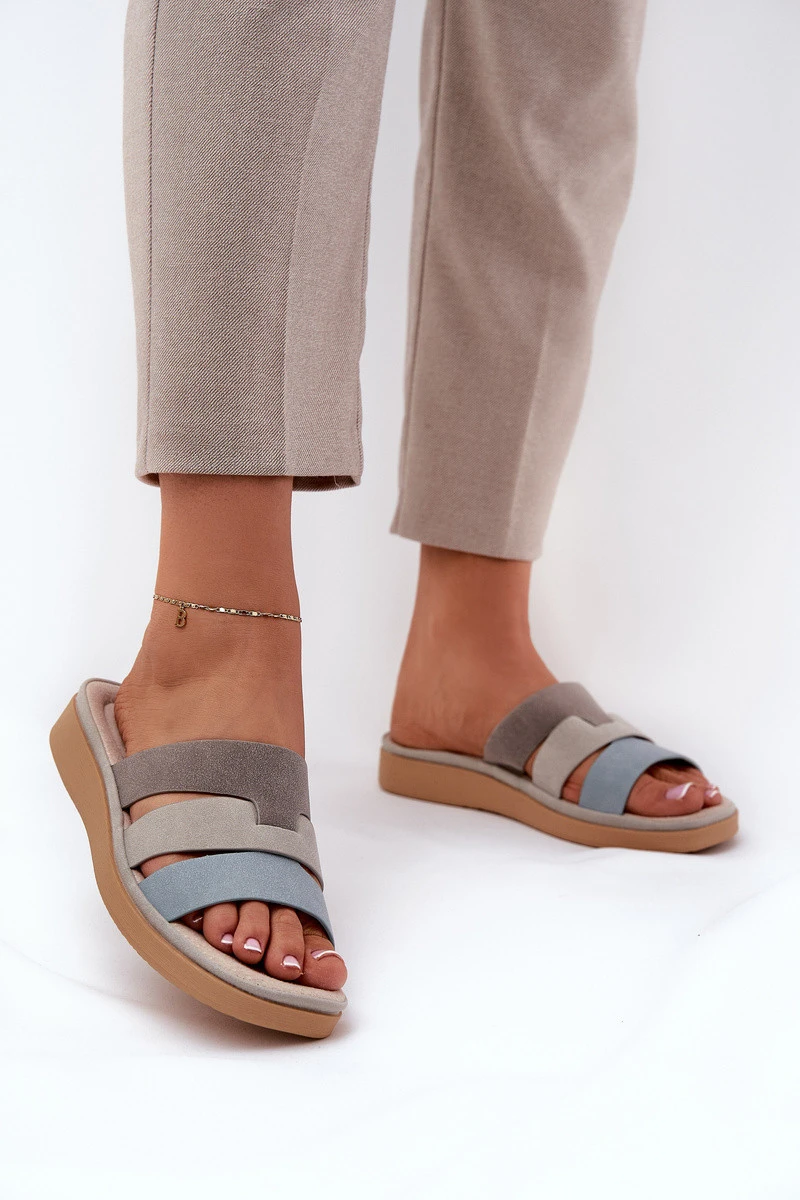 Dámské pantofle z eko semiše jsou stylovým a komfortním návrhem na teplé dny. Usazeny na platformě. Tři pásky vpředu jim dodávají moderní charakter. Měkká kožená vložka s efektivním polštářem zajišťuje pohodlí po celý den a stará se o komfort nohou. Tyto pantofle budou ideální volbou na letní procházky! Při výběru velikosti se řiďte tabulkou velikostí.