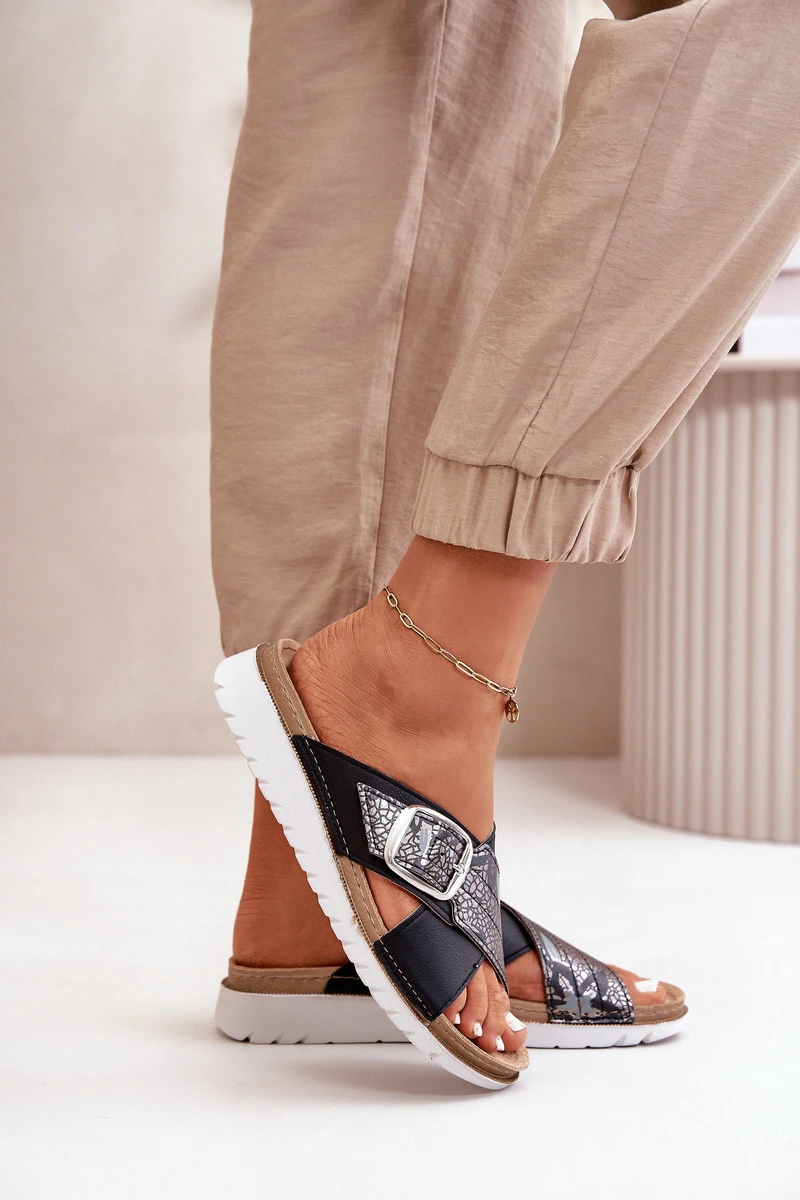 Pohodlné dámské pantofle s přezkou Inblu CN000032 černé