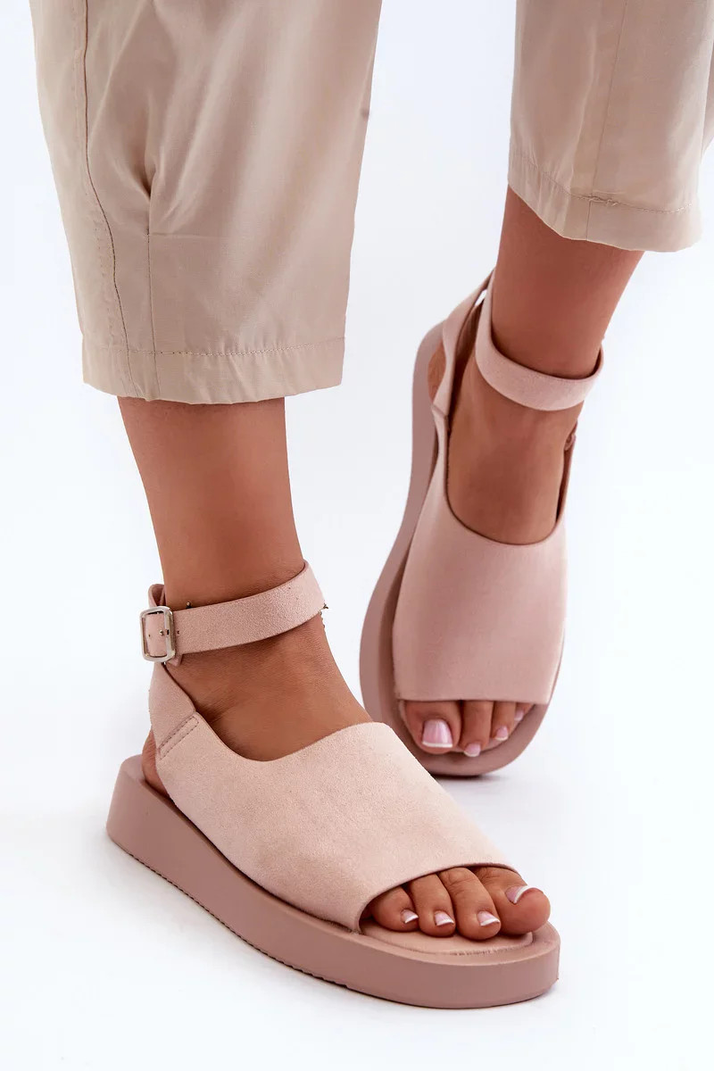 Jedinečné dámské sandály na platformě. Tyto boty jsou vyrobeny z na dotek příjemného ekologického semiše. Mají měkkou vložku z ekokůže. Sandály se zapínají kolem kotníku pomocí nastavitelného pásku s přezkou. Tento neobvyklý model jistě obohatí váš letní šatník! Při výběru velikosti se řiďte tabulkou velikostí.