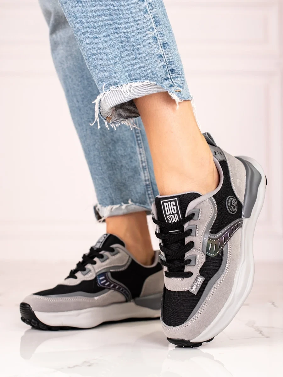 Pohodlné dámské tenisky šedo-stříbrné bez podpatku