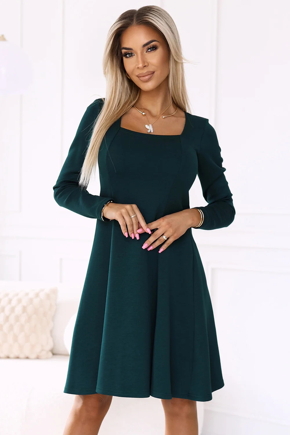 Přidání recenze k Pohodlné dámské trapézové šaty v lahvově barvě s výstřihem a dlouhými rukávy model 20625775 - numoco