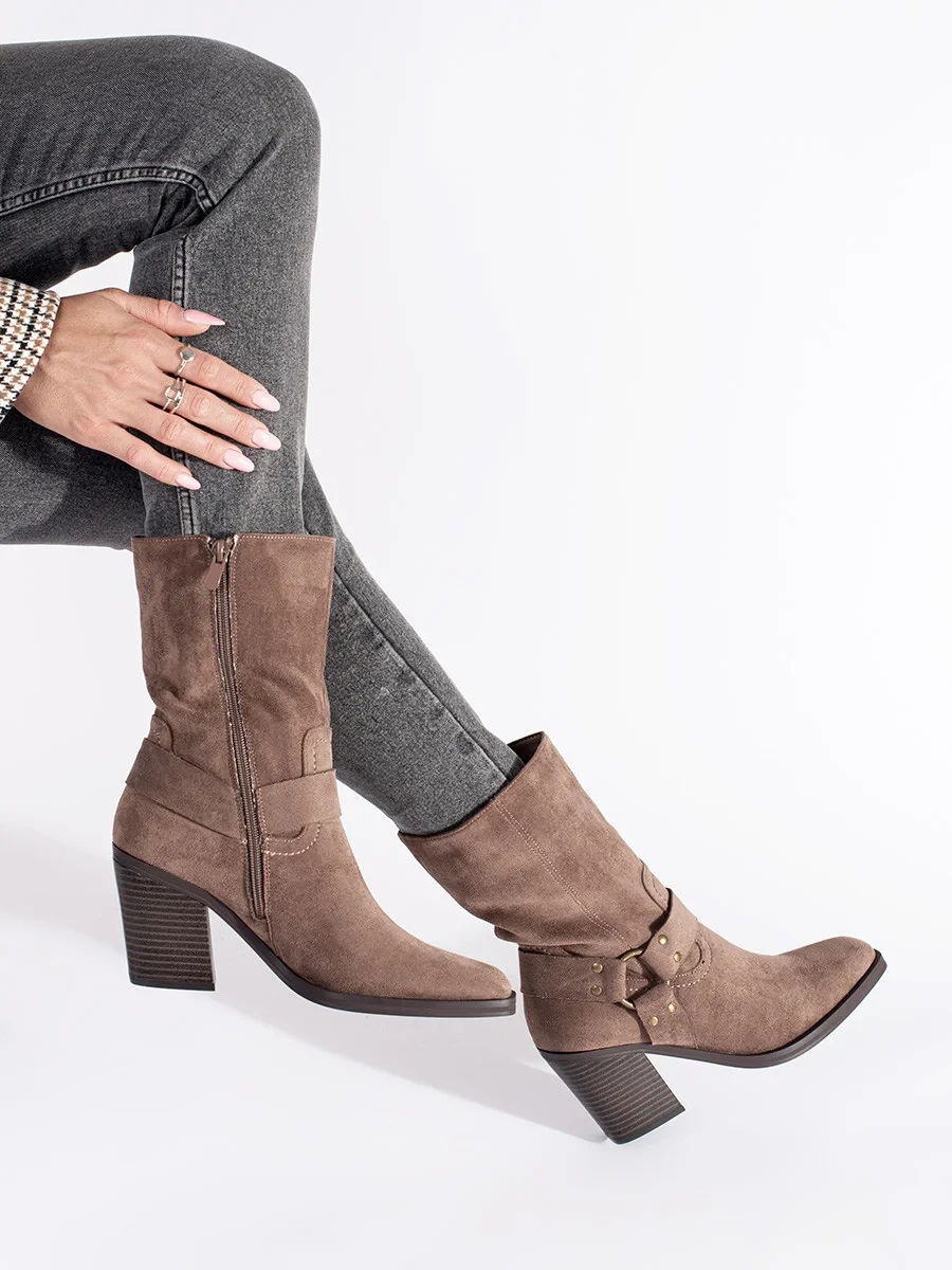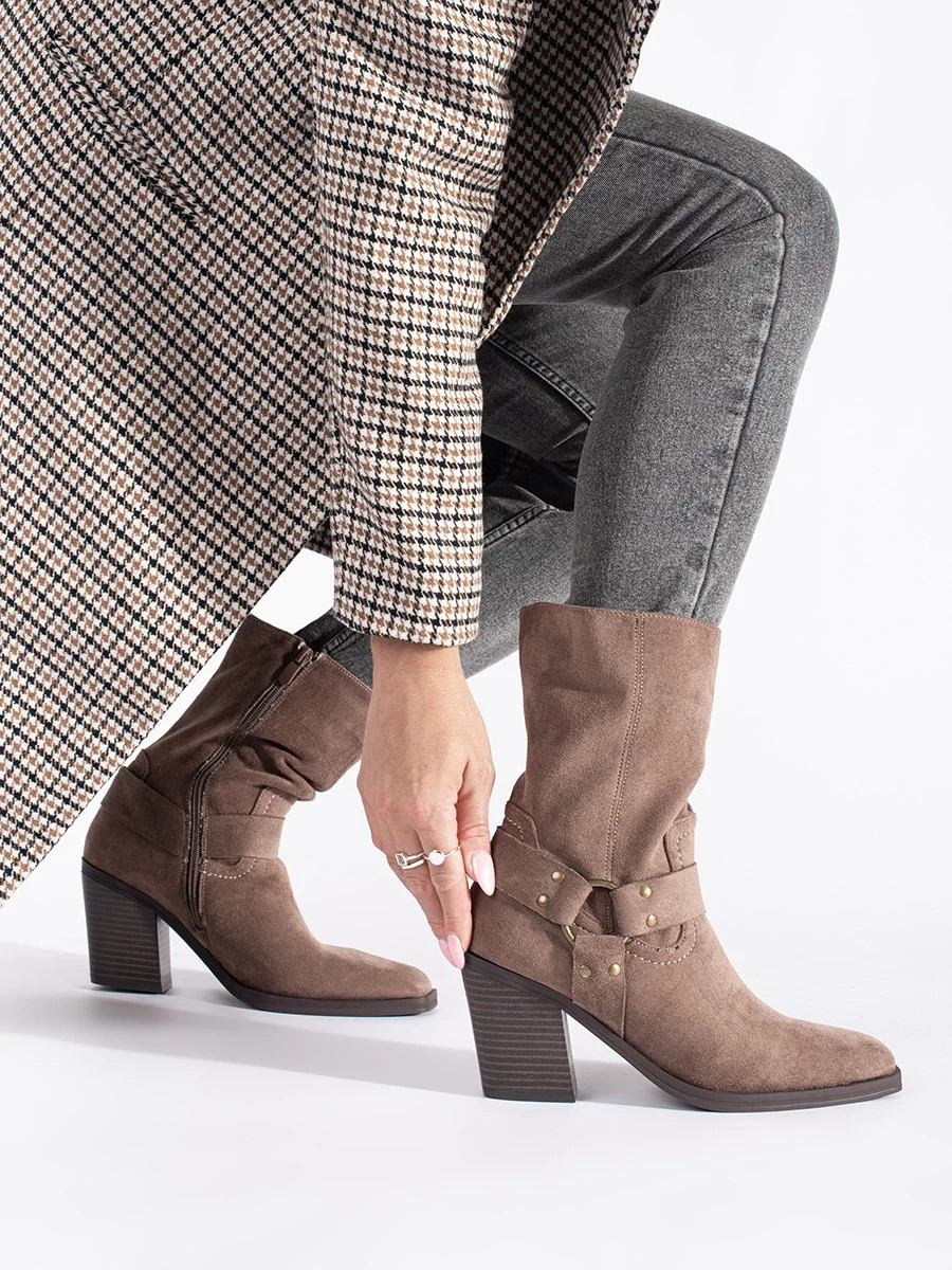 Pohodlné hnědé kotníčkové boty dámské na plochém podpatku