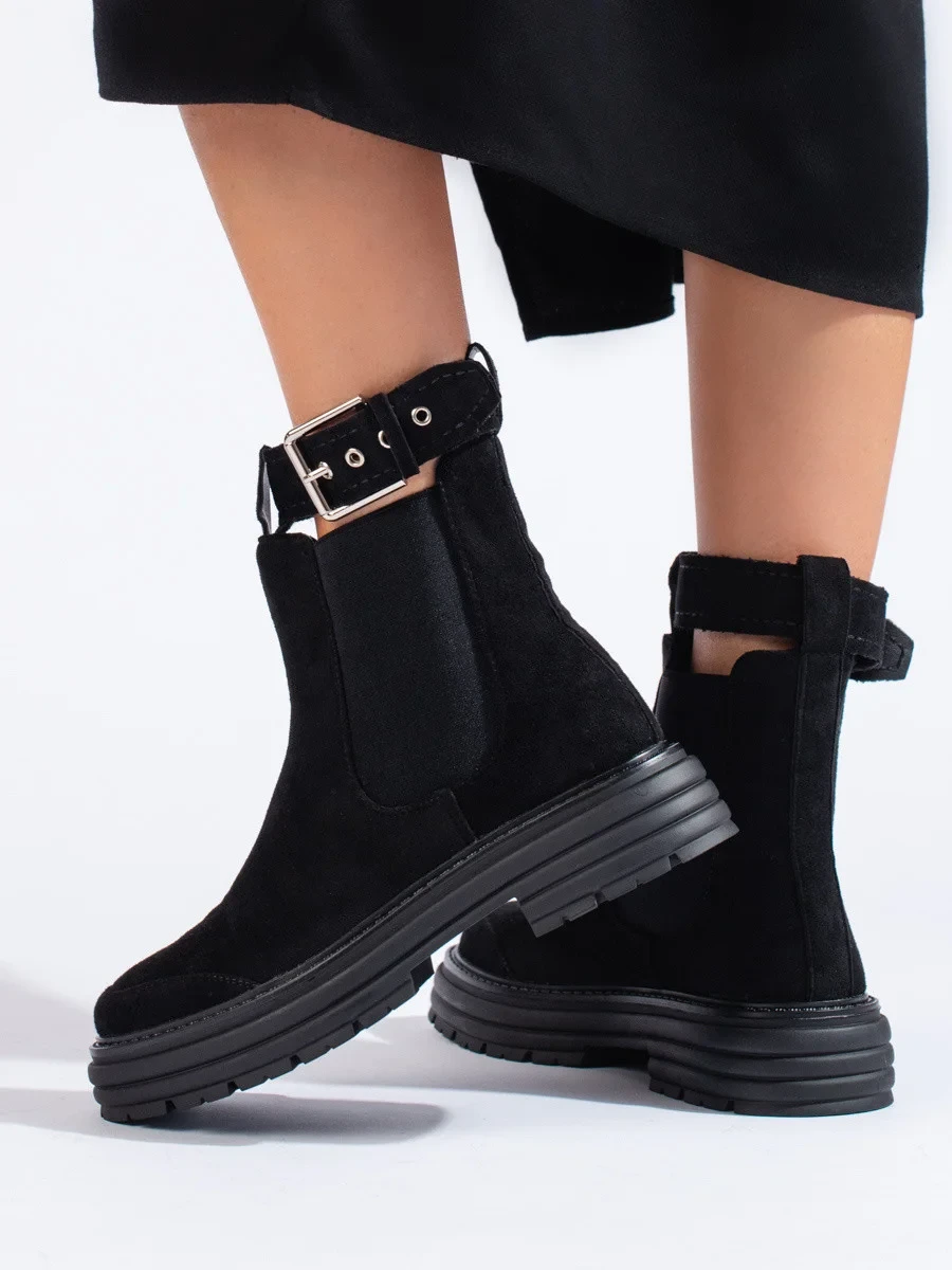 Pohodlné kotníčkové boty dámské černé na plochém podpatku