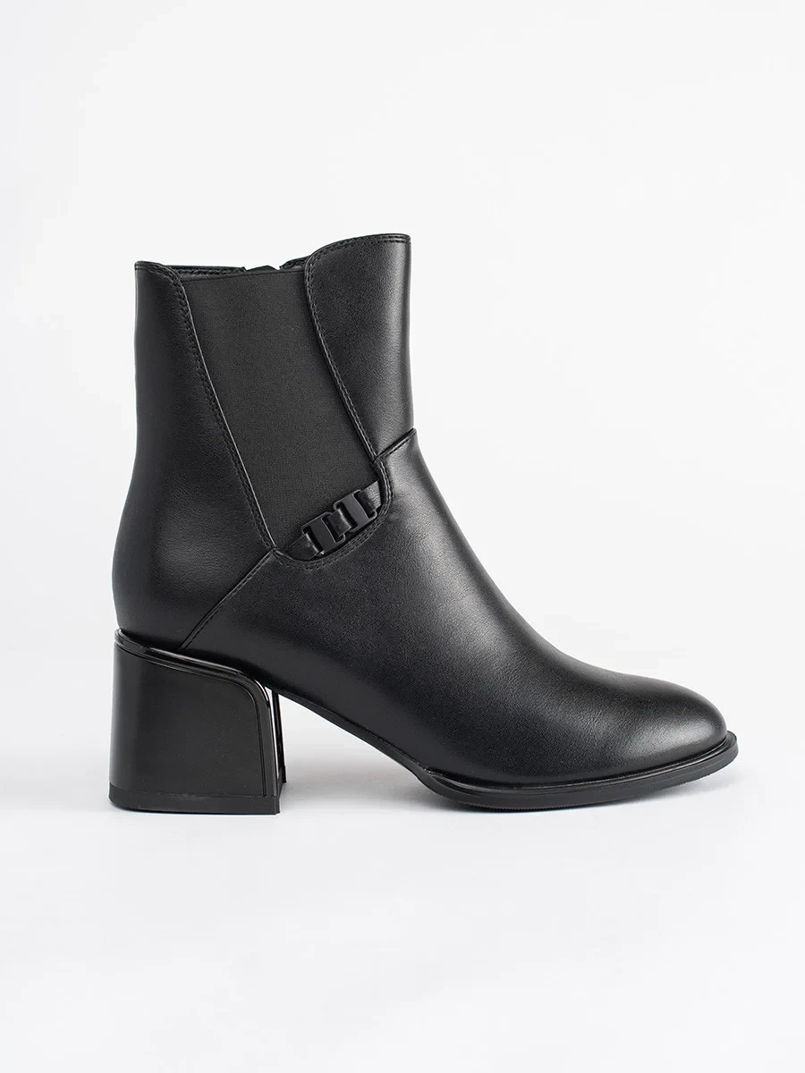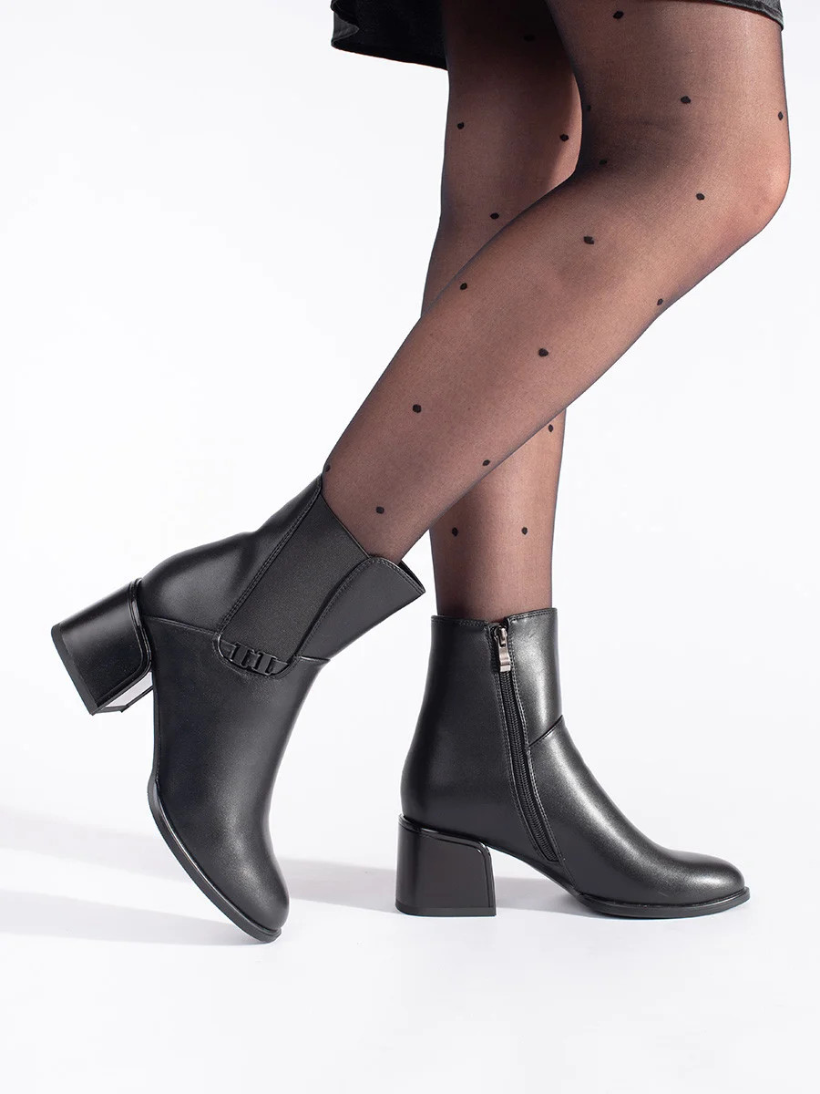 Pohodlné kotníčkové boty dámské černé na širokém podpatku