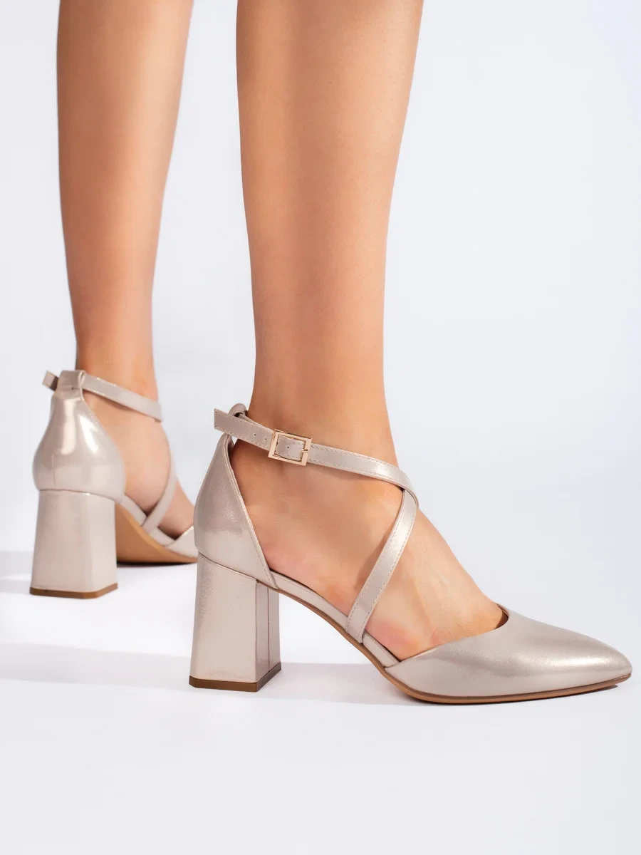 Pohodlné lodičky dámské zlaté na širokém podpatku