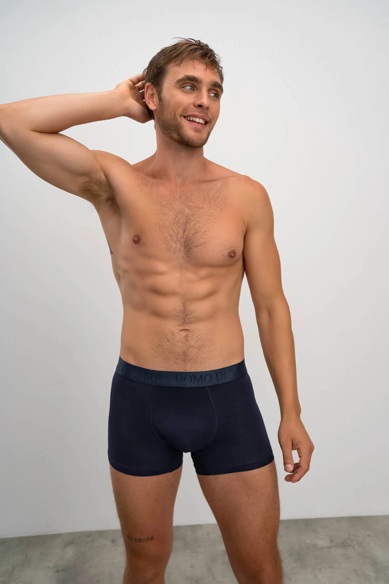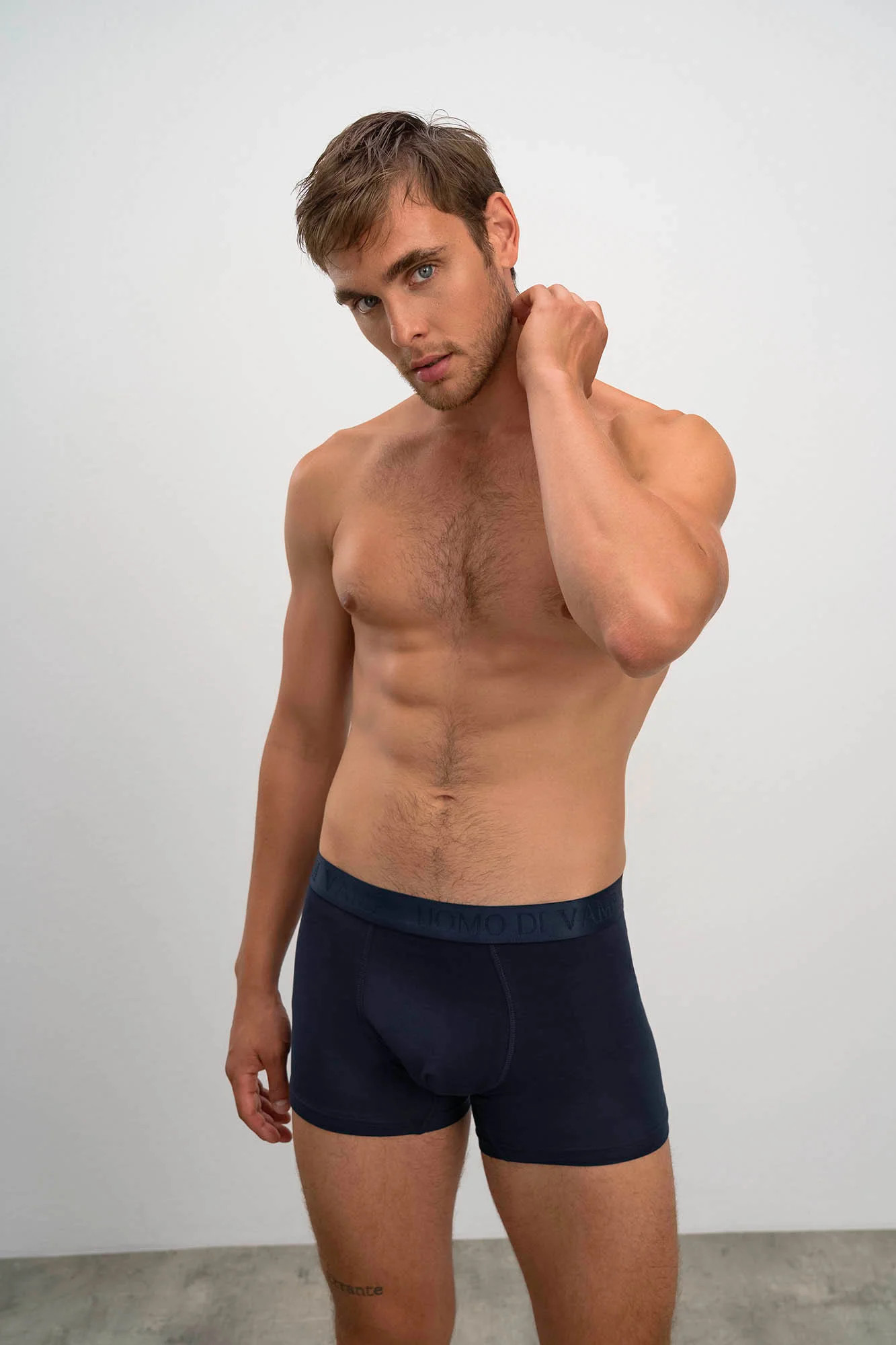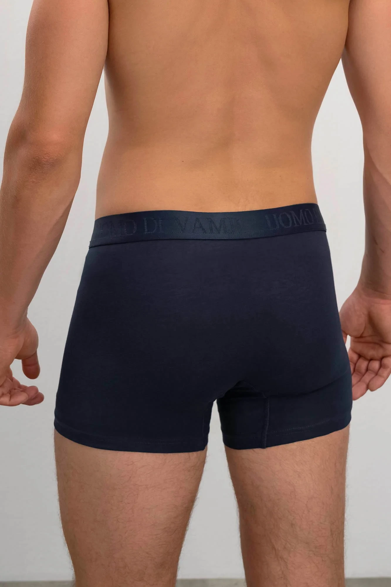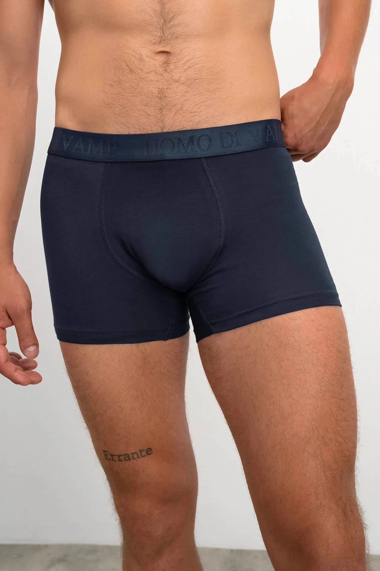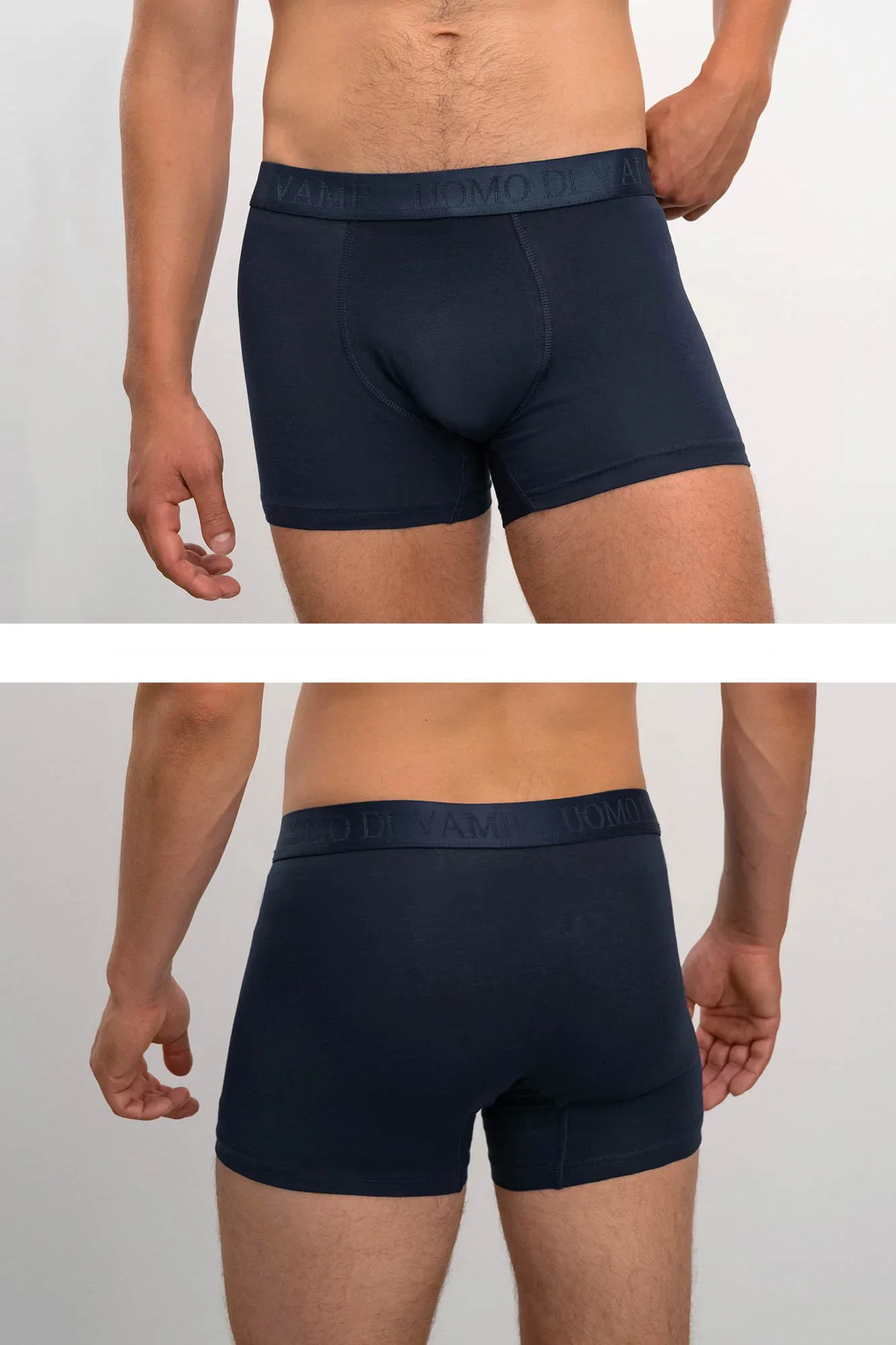 Pohodlné jednobarevné pánské boxerky s našitou plochou gumou v pase s textovým detailem "UOMO DI VAMP". Boxerky jsou vyrobeny z vysoce kvalitní, genetický nemodifikované elastické řecké bavlny s příměsí elastanu, která poskytuje vysoké pohodlí, příjemný pocit na dotek, prodyšnost, pružnost a odolnost.