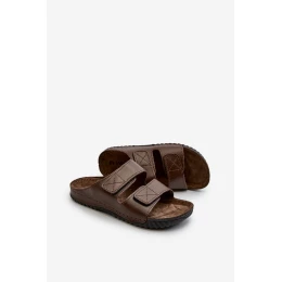 Pohodlné pánské žabky s zipy tmavě hnědé model 21665802 - Inblu