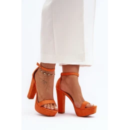 Pohodlné sametové sandály na vysokém podpatku oranžové Essence