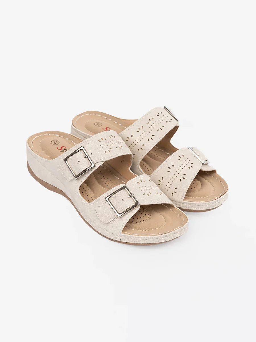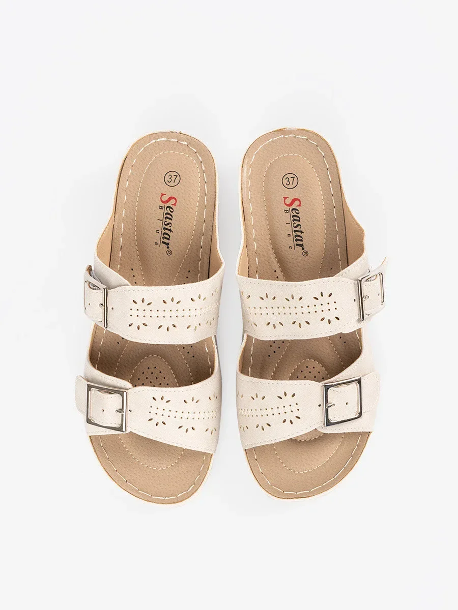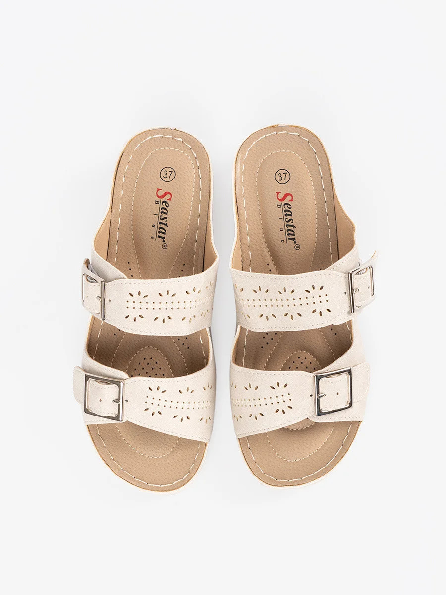 Pohodlné sandály dámské Jasnobeżowy na klínku