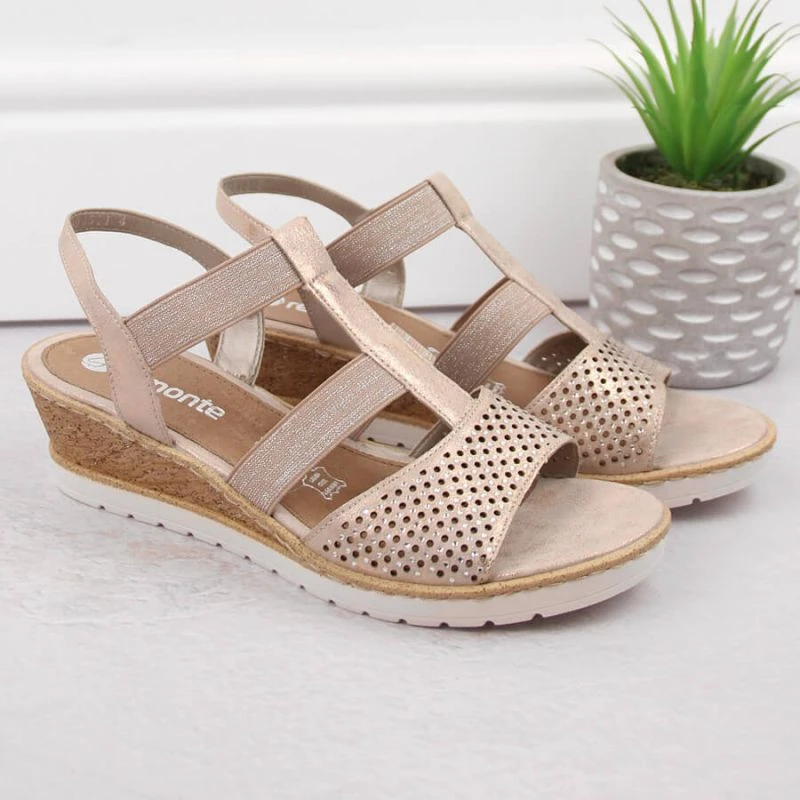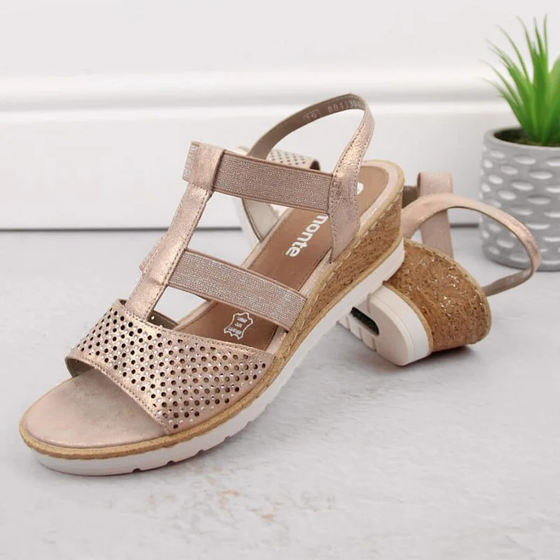 Remonte W RKR667 růžovozlaté pohodlné sandály na podpatku