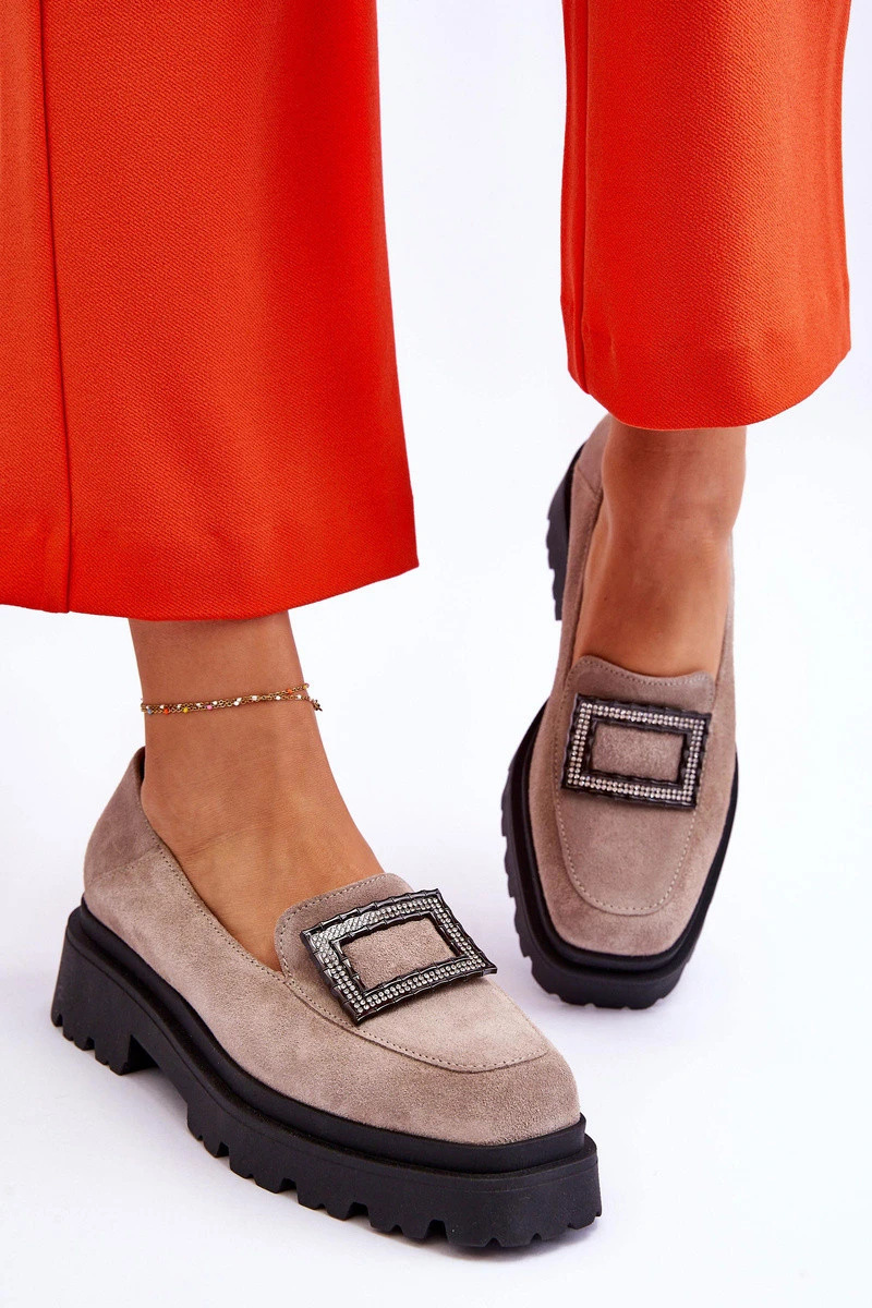 Módní dámské mokasíny jsou vyrobeny z přírodní kůže. Mokasíny byly umístěny na masivní platformě a plochém podpatku. Navíc mají vpředu zdobení tryskami a vyztuženou patou. Měkká stélka zajišťuje pohodlné používání. Mokasíny budou skvělé v mnoha stylech! Při výběru velikosti se řiďte tabulkou velikostí.