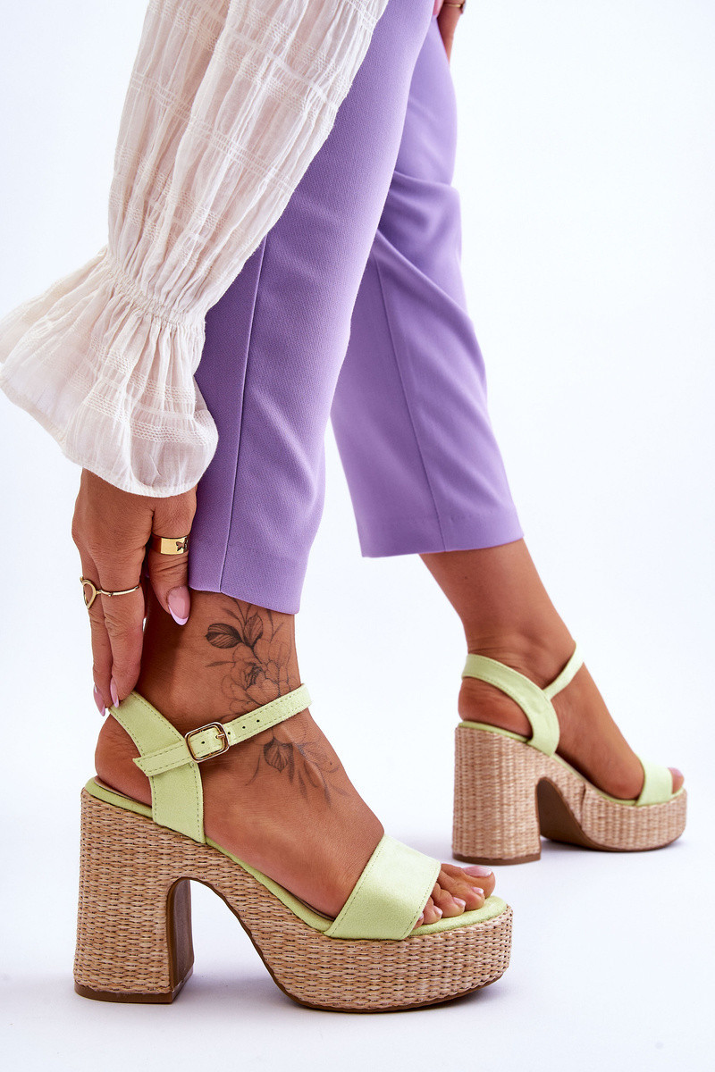 Pohodlné semišové sandály na robustním podpatku Světle zelená Elishia