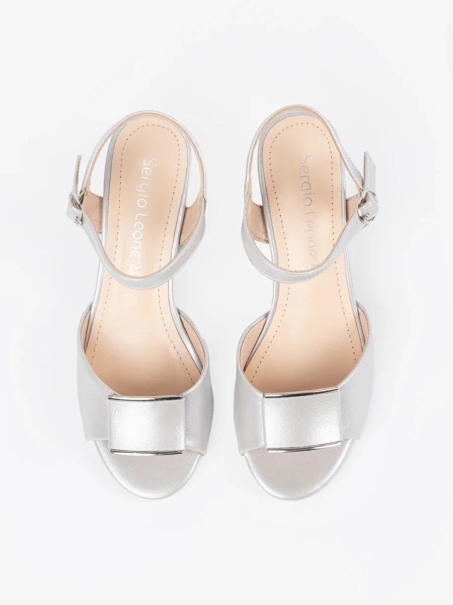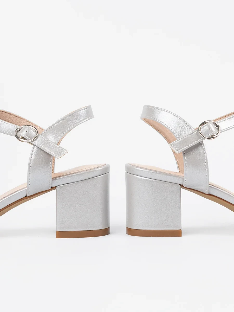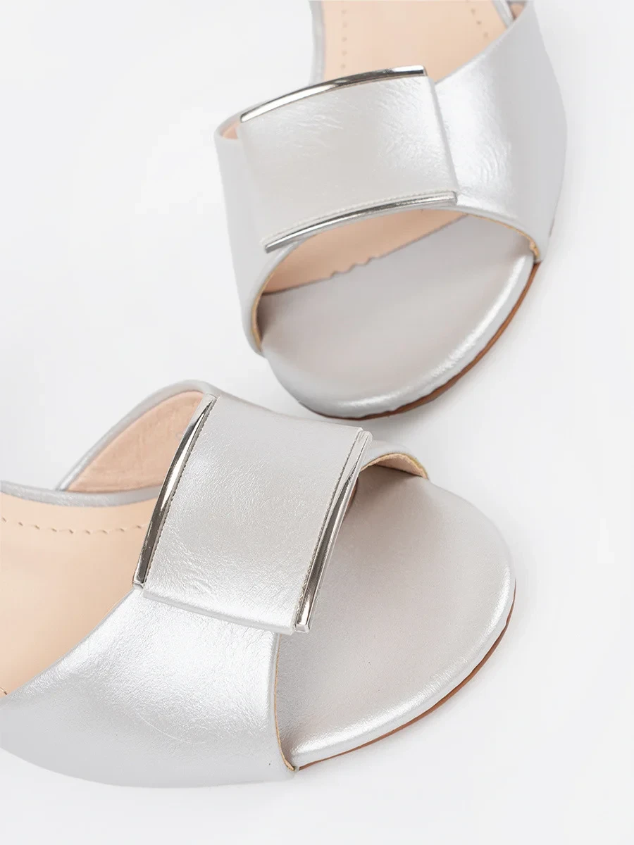 Pohodlné stříbrné sandály dámské na širokém podpatku