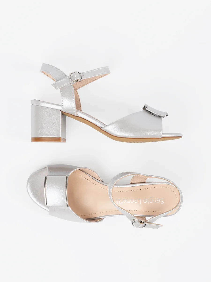 Přidání recenze k Pohodlné stříbrné sandály dámské na širokém podpatku
