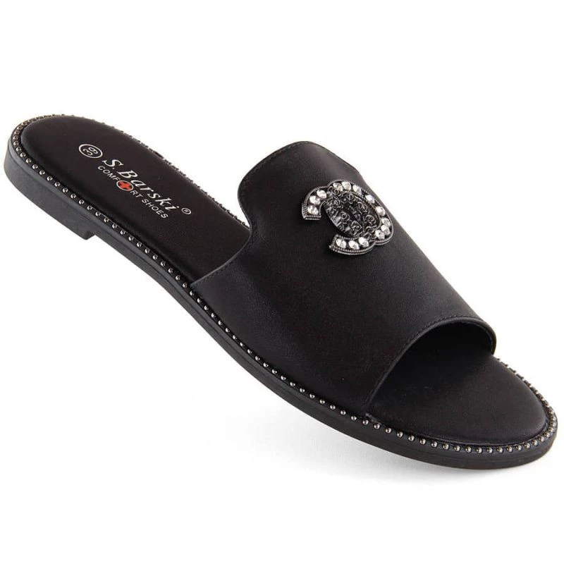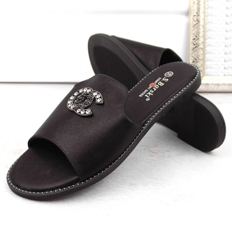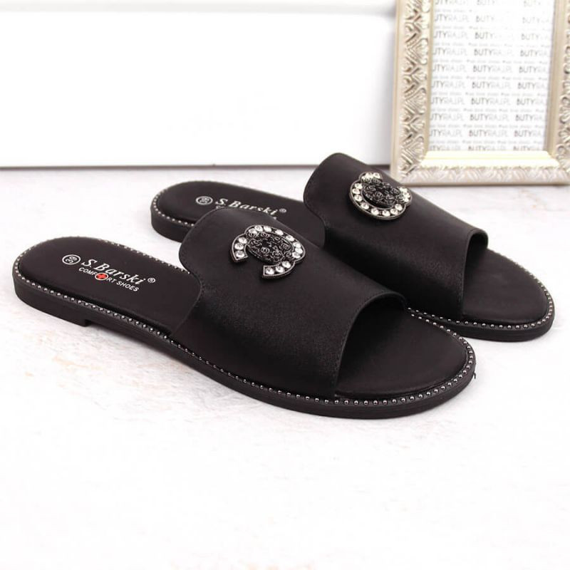 Pohodlné žabky se zirkony S.Barski W OLI258A černé