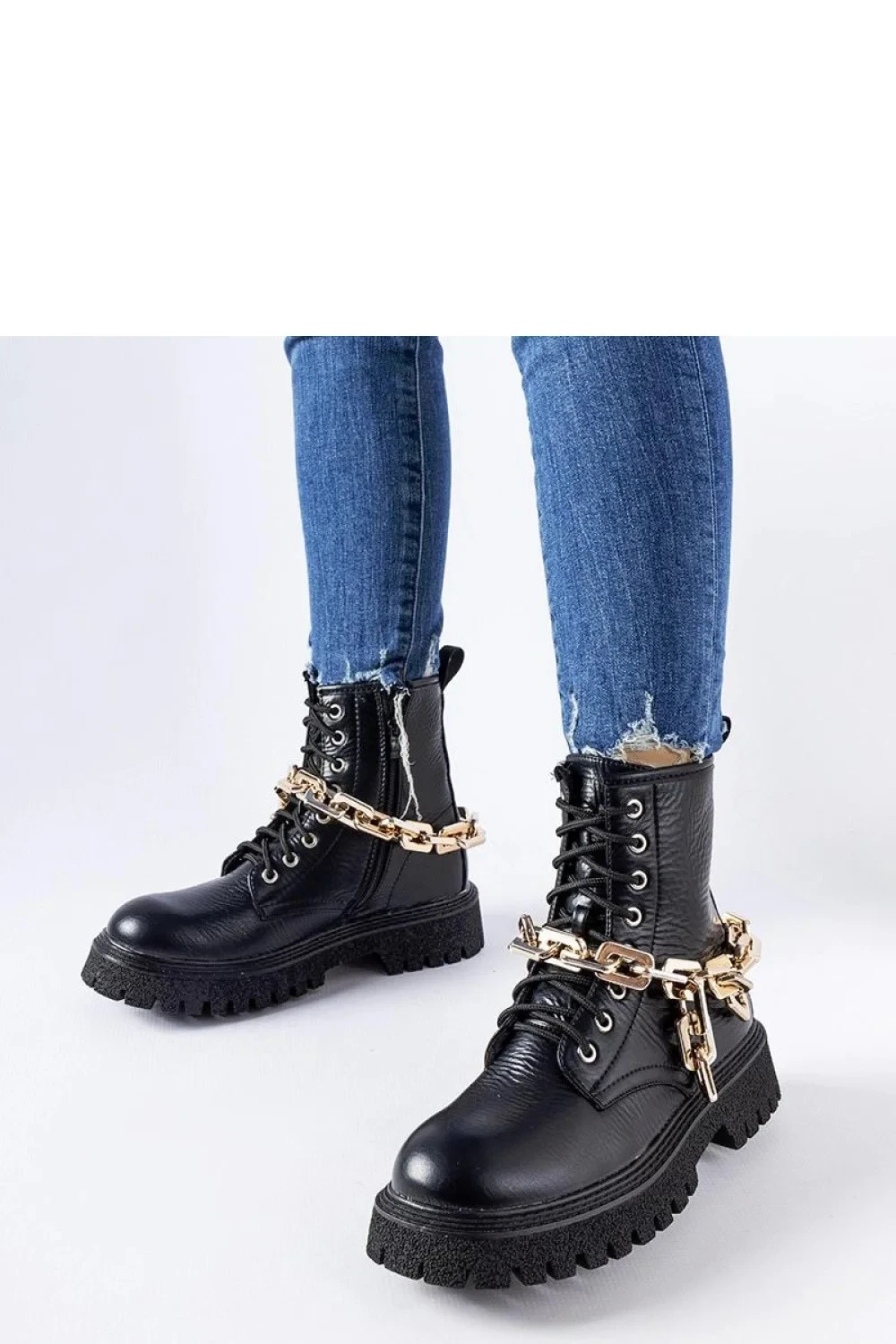 Černé řetízkové trapasy Bowling jsou ideální obuví pro ženy, které ocení pohodlí i styl. Střední podpatek dodává botám ženský nádech a zároveň zajišťuje stabilitu při chůzi. Trappery jsou zateplené, takže jsou ideální volbou pro chladnější dny. Šněrovací model navíc umožňuje přizpůsobení obuvi. Trapery zdobené řetízkem jsou nejen praktické, ale také módním doplňkem každého outfitu. Díky vysokému zakončení za kotníkem jsou vhodné jak k džínům, tak k sukním nebo šatům. Černé trapéry Bowling s řetízkem jsou dokonalou kombinací pohodlí, stylu a elegance. Ať se tento model stane nepostradatelnou součástí vašeho šatníku pro nadcházející podzim a zimu!