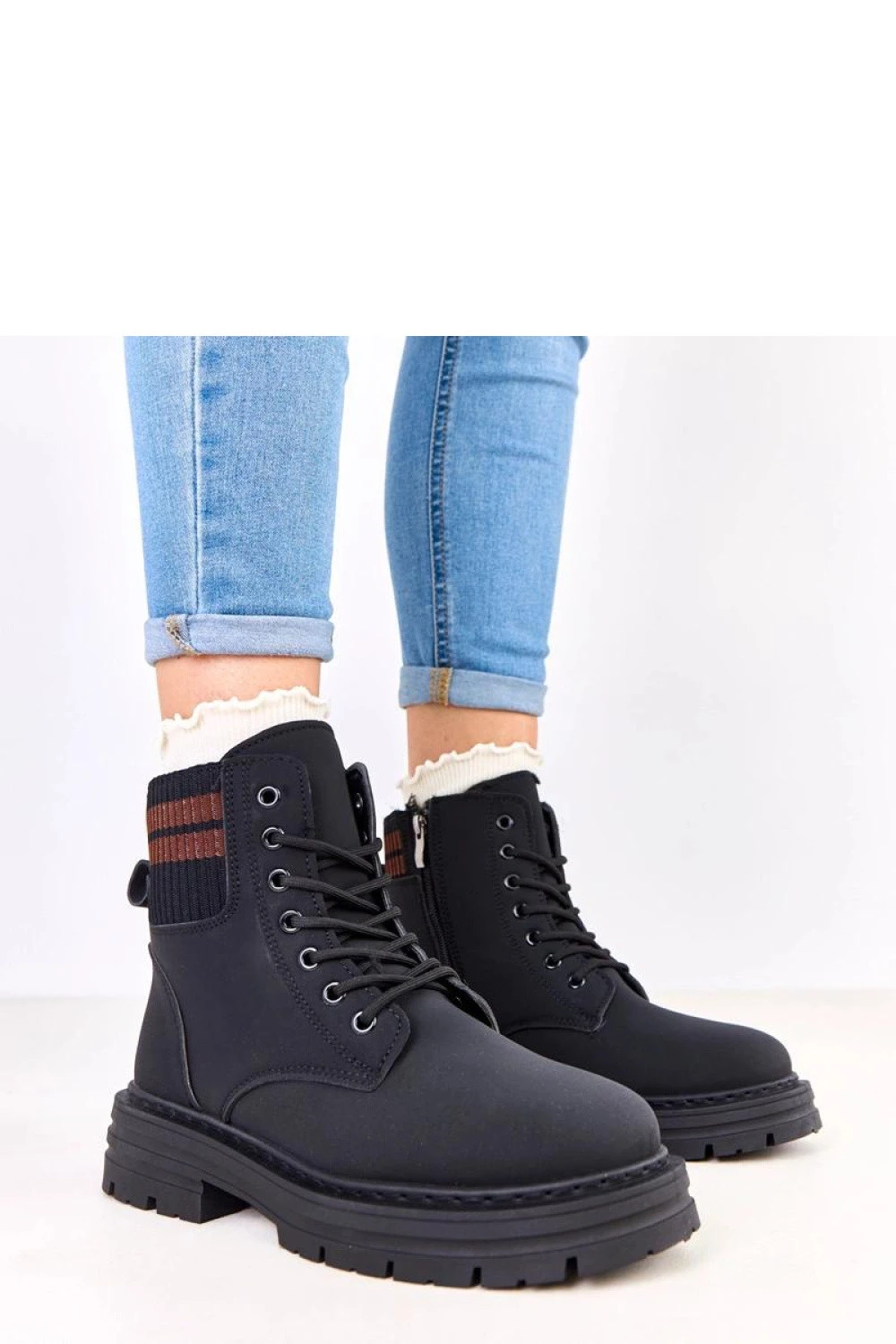 Moderní a pohodlné dámské kozačky s koženým podšívkou jsou ideální volbou na chladné dny. Vyrobené z vysoce kvalitní ekologické kůže, kombinují odolnost s módním vzhledem. Na výšce kotníku je stylový materiálový vložka s kontrastními pruhy, která botám dodává originální, sportovní charakter. Model má kulatou špičku a šněrování umožňuje přizpůsobit obuv noze, zatímco dodatečný zip usnadňuje obouvání a svlékání. Měkké podšívání kožíškem zajišťuje tepelný komfort a pohodlí při každodenním nošení. Kozačky jsou umístěny na stabilním podpatku o výšce 4 cm, který zaručuje jistotu kroku a pohodlí chůze. 13,5 cm vysoký svršek dobře chrání kotník a stélka z umělé hmoty je odolná a snadno se udržuje čistá. Toto spojení praktického pohodlí, módního designu a tepla je ideální pro každodenní, městské stylování v podzimně-zimním období.