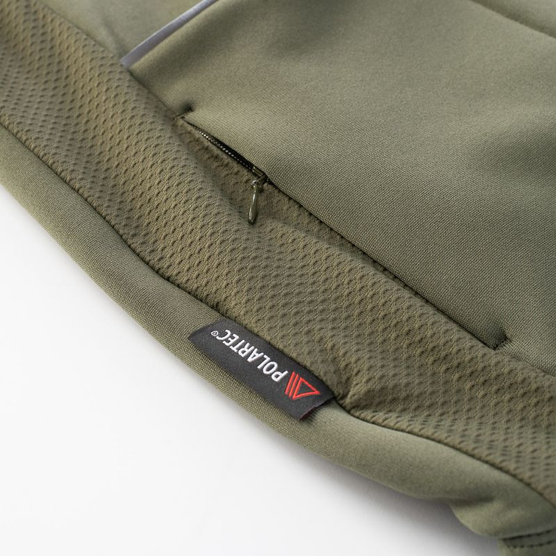 - Materiál: Polartec® Power Stretch®, 84 % polyester, 16 % spandex, 224 g/m².