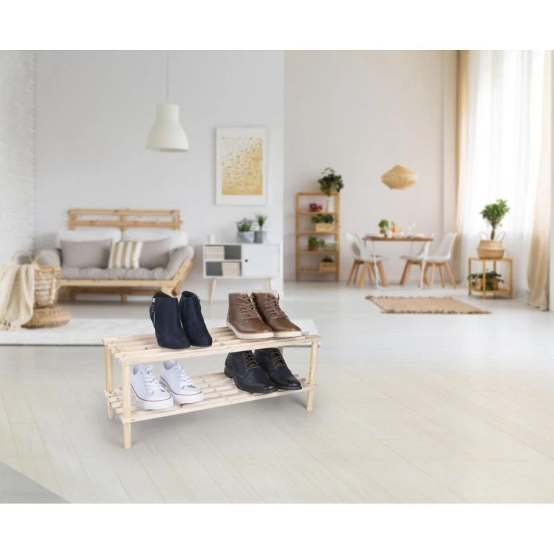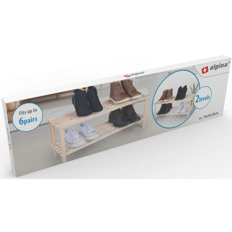 Hledáte lehkou přenosnou skříňku, na kterou byste mohli umístit své boty nebo pantofle? Díky dvoupatrovému dřevěnému stojanu ALPINA budou vaše boty přehledně uložené a vždy po ruce!