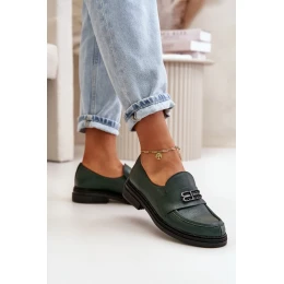 Elegantní dámské polobotky vyrobené z přírodní kůže spojují styl a pohodlí. Jsou osazeny na plochém podpatku. Zaoblené špičky dodávají jemnosti. Pás s malou ozdobou představuje jemný, dekorativní akcent. Kromě toho má tento model zpevněný zápěstí, co zajišťuje stabilitu a podporu chodidla. Ideální pro každodenní a formální stylizace.