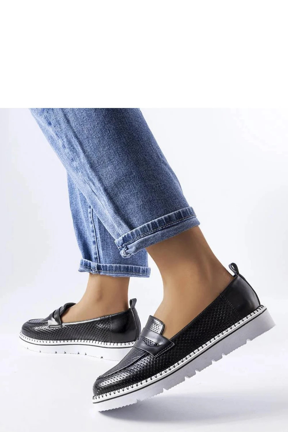 Elegantní polobotky Bloomsburg Sneakersy jsou ideální kombinací stylu a pohodlí. Vyrobené z černé ekologické kůže s perforací, mají kulatou špičku a nízký podpatek. Vnitřek bot je vyložen měkkou vložkou z přírodní kůže, poskytující dodatečný komfort. Zapínání na zasunutí usnadňuje jejich obouvání a bílá gumová podrážka jim dodává moderní vzhled. Skvělé pro každodenní outfit, jak elegantní, tak streetwearový. K dispozici v standardním číslování, doporučujeme vybrat svou běžnou velikost. Ideální na léto, bez dalšího zateplení.