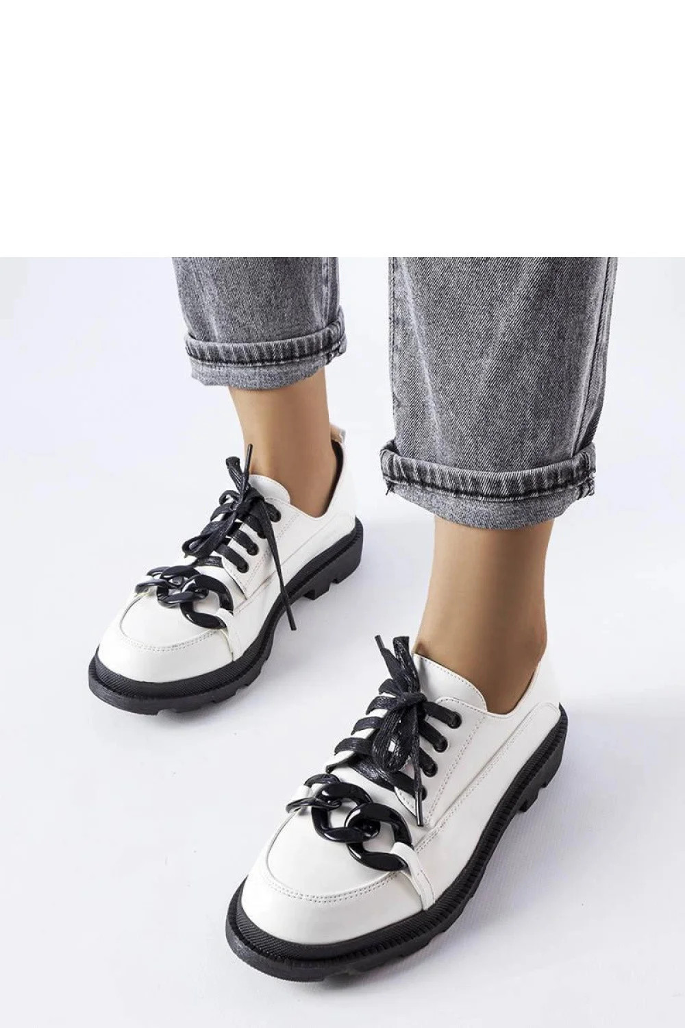 Bílé polobotky s řetězem Allain jsou ideální obuví na nadcházející léto. Mají módní, traktorovou podrážku s čtvercovým, plochým podpatkem a nízkým kotníkem. Přední část boty je zdobená krátkým šněrováním a minimalistické prošívání jim dodává moderní charakter. Vyrobené z ekokože mají stélku z přírodní kůže pro další pohodlí. Skvěle budou ladit s tílkem s dekoračními řetízky a koženou sukní. Velikost je standardní, takže si můžete vybrat svou obvyklou velikost. Boty nemají žádné vyztužení a podrážka je z černé gumy. Zapínají se na šněrování, jsou nejen stylové, ale také pohodlné a praktické na každý den.