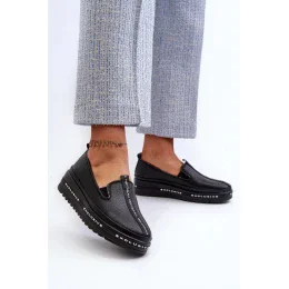 Slip-on dámská obuv S.Barski z přírodní kůže je kombinací elegance a pohodlí. Stojí na platformě. Zdobené nápisy. Měkká pohodlná stélka. Zaoblená špička. Tento mimořádně stylový model jistě doplní mnoho stylizací!