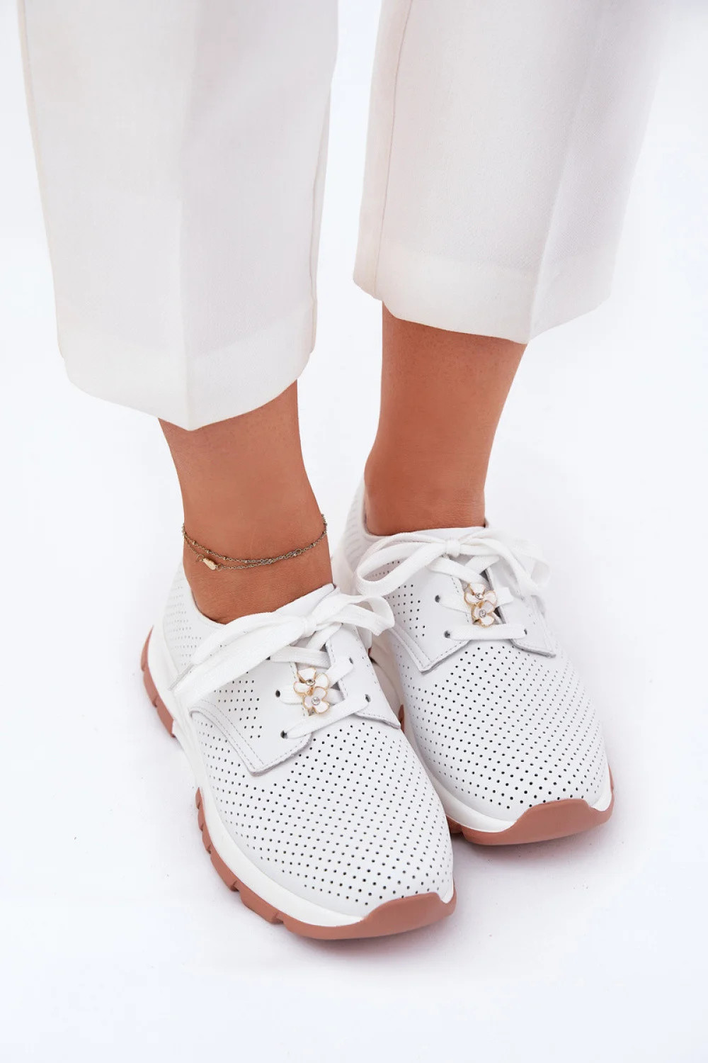 Polobotky dámské ve sportovním stylu vyrobené z přírodní kůže jsou spojením pohodlí a módního vzhledu. Umístěné na platformě zajistí lehkost a pohodlí po celý den. Šněrování zdobené přezkou ve tvaru květů jim dodává půvabný akcent, zatímco zaoblené špičky zaručují plnou volnost pohybu. Kůží podšívka dbá o pohodlí nohou, činí tyto polobotky skvělou volbou na každý den.