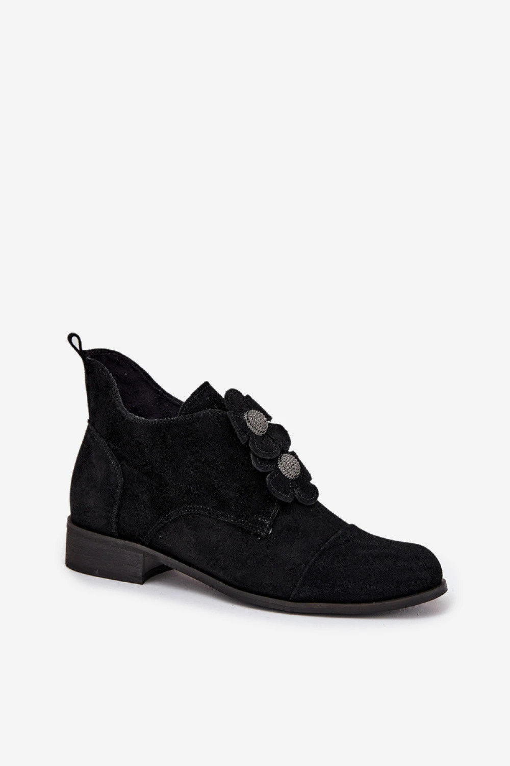 Elegantní dámské polobotky z přírodního semiše jsou jemným a stylovým návrhem pro různé příležitosti. Vyrobené z vysoké kvality semiše, vynikají jemným, ale výrazným vzhledem obohaceným o dva dekorativní květy, které jim dodávají jedinečný šarm. S patentem, co zaručuje pohodlí a snadnost obutí. Tyto polobotky skvěle ladí s elegantními i volnými stylizacemi, spojují pohodlí s ženským, elegantním vzhledem.