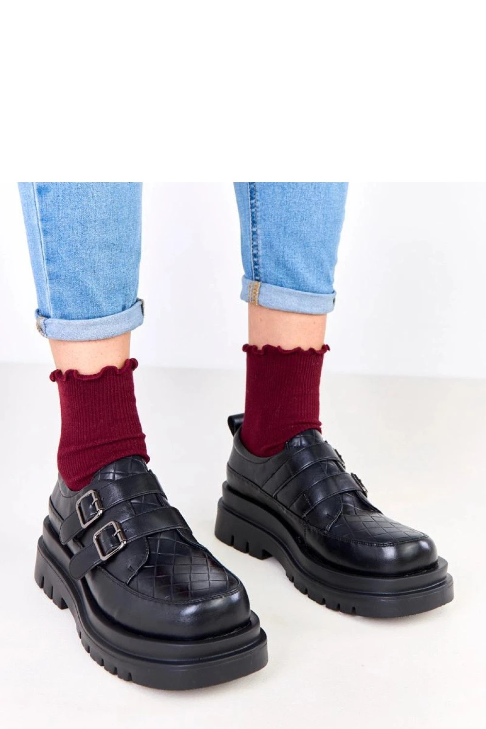 Poloboty na masivní platformě se zapínáním ozdobnými sponami jsou ideální kombinací moderního stylu a pohodlí. Vyrobené z vysoké kvality ekologické kůže, vypadají mimořádně efektně, a kulatý špičatý nos dodává subtilní eleganci. Model je umístěn na stabilní platformě o výšce 5 cm, která dodá postavě lehkost a zajistí pohodlí při chůzi. Zapínání na zip usnadňuje obutí, a ozdobné spony jsou stylovým, přitažlivým detail. Stélka z přírodní kůže zaručuje pohodlí a správnou cirkulaci vzduchu po celý den. Moderní, efektní a univerzální doplní jak každodenní, tak elegantní styly.