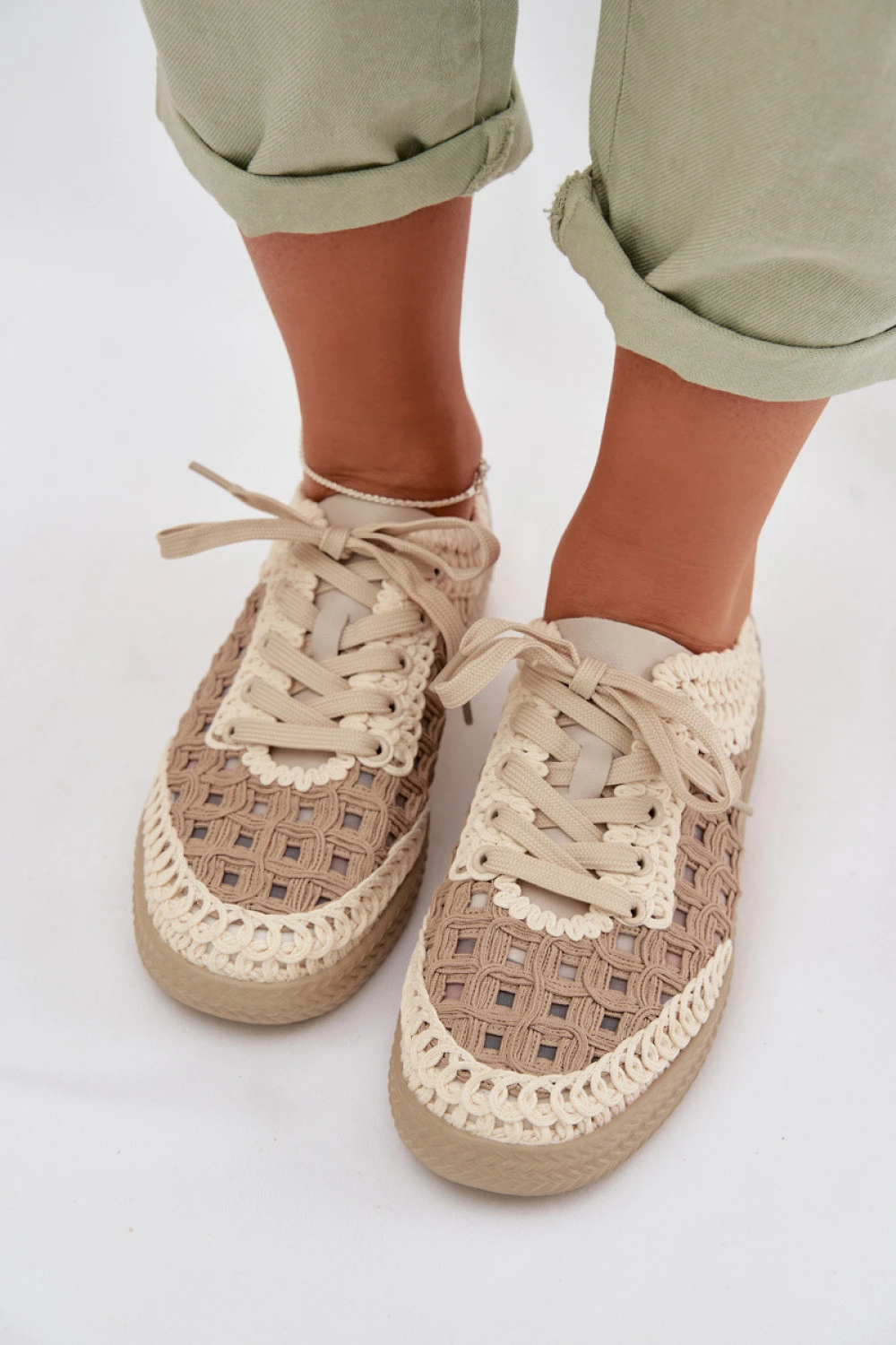 Pletené polobotky značky D&A jsou stylovou nabídkou spojující pohodlí s jemným, ležérním charakterem. Horní část je vyrobena z kombinace látky a přírodní kůže, což zajišťuje odolnost, dobré přizpůsobení a estetické provedení. Na spodní straně límce je použita síťka, která zvyšuje prodyšnost a pohodlí nošení, zejména v teplejších dnech. Model umístěný na jemné platformě dodává lehkost krokům a klasické šněrování umožňuje individuální přizpůsobení noze. Jsou to pohodlné polobotky, které se skvěle osvědčí v každodenních stylizacích, nabízející pohodlí a módní vzhled.