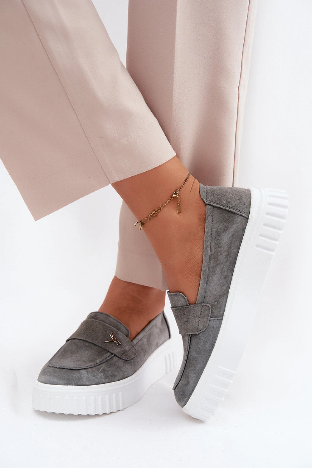 Polobotky pro ženy se vsuvkou z přírodní semišové kůže jsou pohodlným a stylovým návrhem na každý den. Univerzální střih se skvěle kombinuje s různými kousky šatníku, vytvářející volné, ale zároveň propracované outfit. Zvýšená platforma jemně zvedá postavu a zajišťuje pohodlí při chůzi. Vepředu je pásek s ozdobným detail, který dává celku charakter a zdůrazňuje moderní vzhled modelu. Měkká kůží vložka zvyšuje pohodlí nošení, díky čemuž se polobotky osvědčí i při delším nošení. Jedná se o skvělou volbu k džínám, látkovým kalhotám nebo každodenním outfitům, kdy je důležitý komfort a styl.