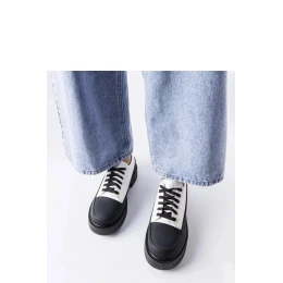 Elegantní bílé polobotky na ploché podrážce značky Merico jsou ideální volbou na nadcházející léto. Velikost je standardní, takže se vyplatí držet svou běžnou velikost. Vyrobené z vysoké kvality ekologické kůže zam, zaručují trvanlivost a pohodlí nošení. Podrážka z černé gumy zajistí stabilitu a jistotu kroků. Zapínání na tkaničky umožňuje perfektní přizpůsobení bot k noze. Ideální na každodenní nošení, do práce nebo na setkání s přáteli. Must-have v šatníku každé módní ženy!