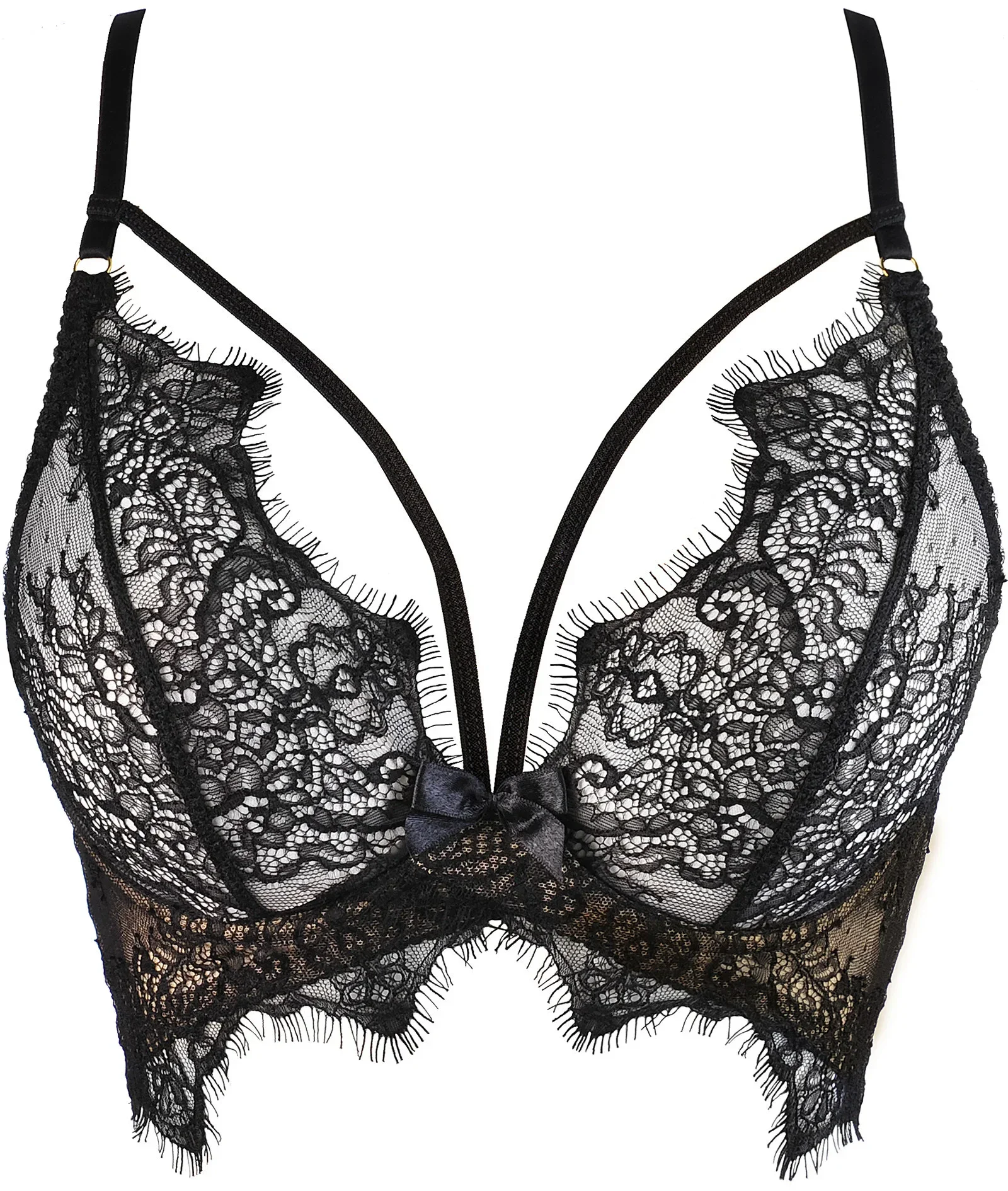 Tato jedinečná černá podprsenka v podobě smyslného polokorzetu V-9501 vám zamotá hlavu! Neobyčejný design a jemné tkaniny budou komplimentem pro vaši krásu a zajistí vám maximální pohodlí. Má dvojité zapínání na háčky, neodnímatelná ramínka a zlaté zdobení. Materiálové složení: polyamid 59 %, viskóza 30 %, polyester 11 %