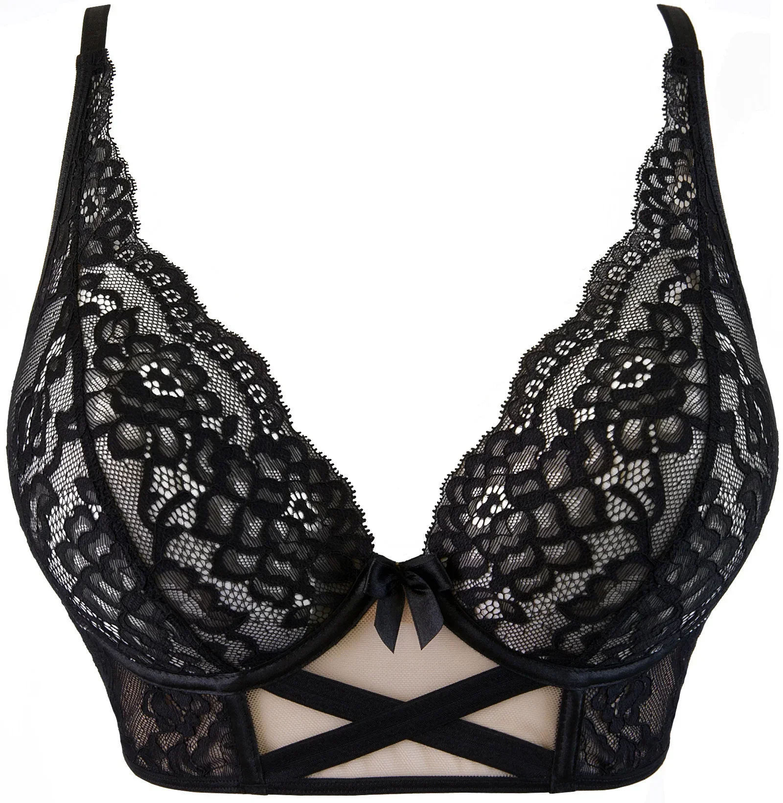 Sexy a smyslný polokorzet V-9631 je spodní prádlo navržené tak, aby provokovalo a svádělo. Avantgardní, svůdný motiv kříže na průhledném povrchu působí tajemným a nevyzpytatelným dojmem. Měkký polokorzetový model má zapínání na háčky v páté řadě a na zádech má také překřížená ramínka z tylu v tělové barvě, která poskytují oporu. Popruhy nejsou odnímatelné. Spolu s tangy V-9638 a punčochami V-7844 jsou dokonalým překvapením pro romantický večer.