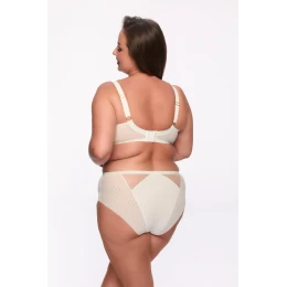 Poloměkká podprsenka Laila Art. 1280 Maxi od společnosti GAIA je dokonalou kombinací elegance, pohodlí a opory pro ženy s plnějšími křivkami.Vyztužená konstrukce poskytuje vynikající oporu poprsí a zároveň ho tvaruje a dodává mu přirozený tvar.Krajkové lemování dodává romantický půvab a ozdobná ramínka zvýrazňují dekolt, čímž vytvářejí moderní a smyslný vzhled.Široká, nastavitelná ramínka zajišťují pohodlné celodenní nošení a pevné zapínání na háčky a smyčky zajišťuje dokonalé přizpůsobení.
