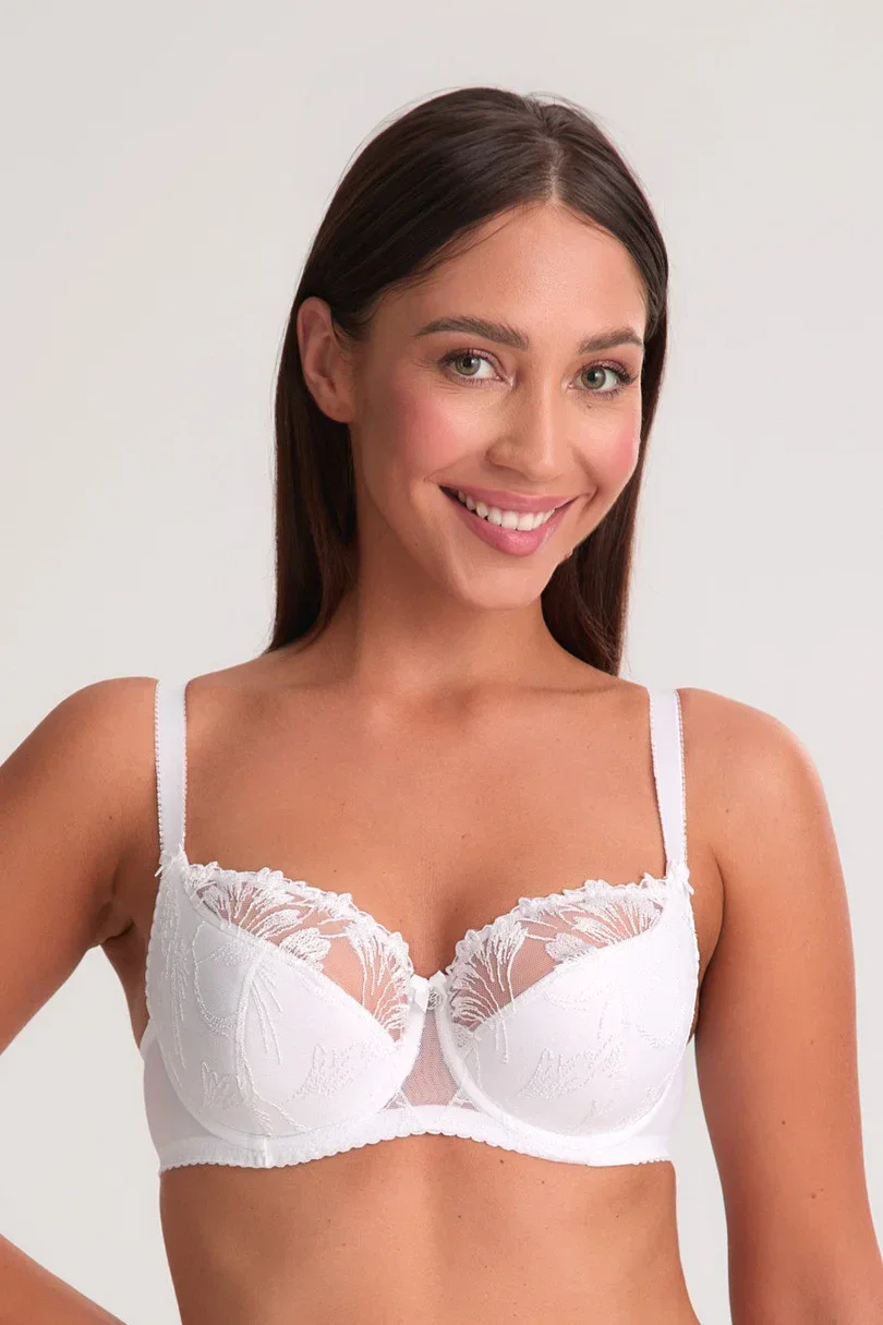 Podtrhněte svou ženskost a ciťte se výjimečně každý den díky poloměkké podprsence Paris 1302 v klasické bílé barvě, vyztuženému modelu, který dokonale kombinuje pohodlí s elegancí. Jemná květinová krajka decentně zdobí horní část košíčků, zatímco spodní část poskytuje poprsí dostatečnou oporu. Ideální volba pro každodenní nošení i speciální příležitosti.