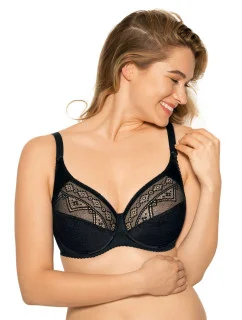 Podprsenka pro ženy s větším, plným poprsím. Polovyztužené košíčky, dekorované jemnou výšivkou s květinovým motivem. Boční části zpevněné svislou kosticí. Široká, pohodlná ramínka - nejsou odepínací. Třístupňové zapínání na háčky. Dává poprsí přirozený, zaoblený tvar a poskytuje ideální držení.