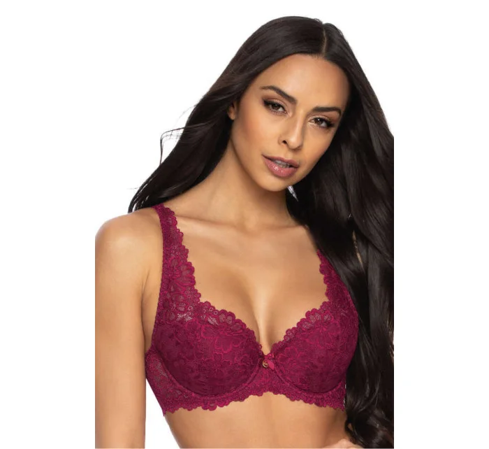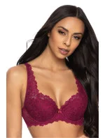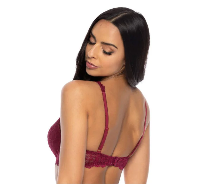 Úžasný podprsenka Carmela. Krásně vypadá na každém poprsí. Celý je vyroben z jemné krajky v barvě bordó, která se sexy skládá na prsou a stoupá podél ramínka nahoru. Ramínka jsou nastavitelná, nelze je odpojit. Zavírání na dvou řadách s třístupňovou regulací.
