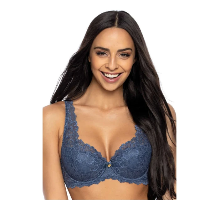 Úžasný podprsenka Carmela. Krásně vypadá na každé hruď. Celý vyrobený z jemné krajky v barvě safíru, která se sexy skládá na prsou a stoupá po ramínku nahoru. Ramínka jsou nastavitelná, nelze je odpojit. Zapínání dvouradé s třístupňovou regulací.